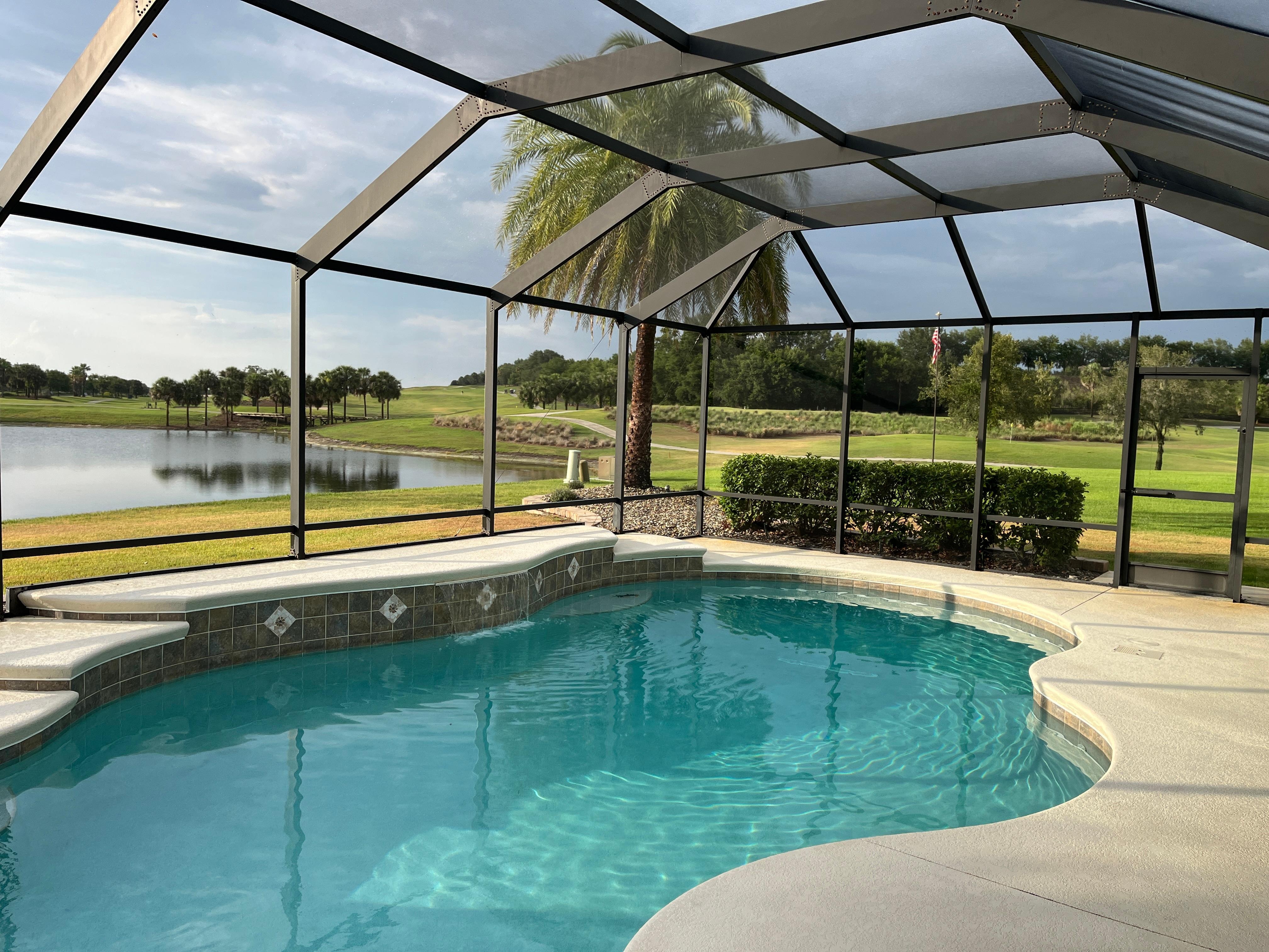 This home is very spacious with a beautiful sunroom, lanai and pool to enjoy your morning coffee overlooking the pond and gold course. Neighborhood is very quiet and perfect for walking. Town squares are easily accessible via golf cart for nightly entertainment. Can’t wait to return!