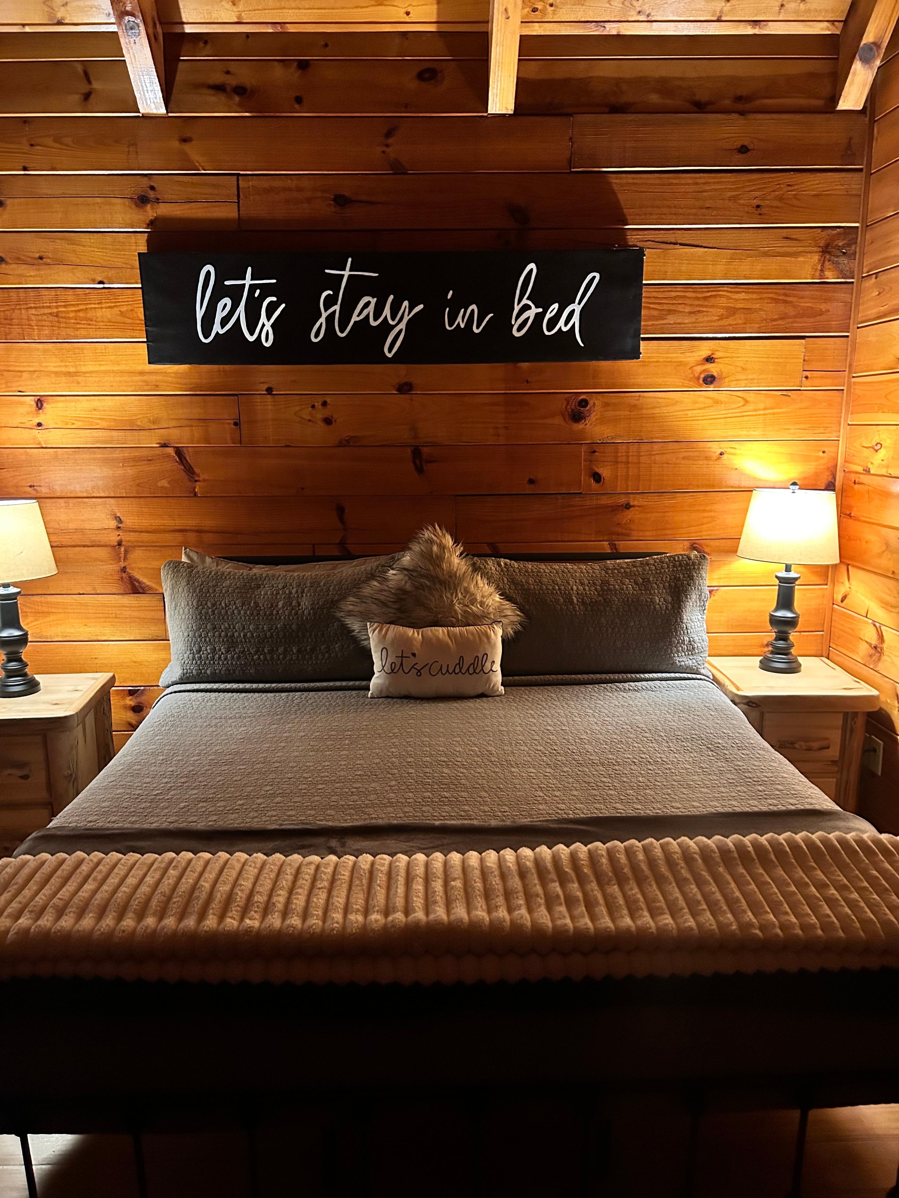 Start the romance off right with a dip in the hot tub on the private back deck while taking in the sounds of nature, a cuddle by the fireplace, in the comfy king bed or Jacuzzi.