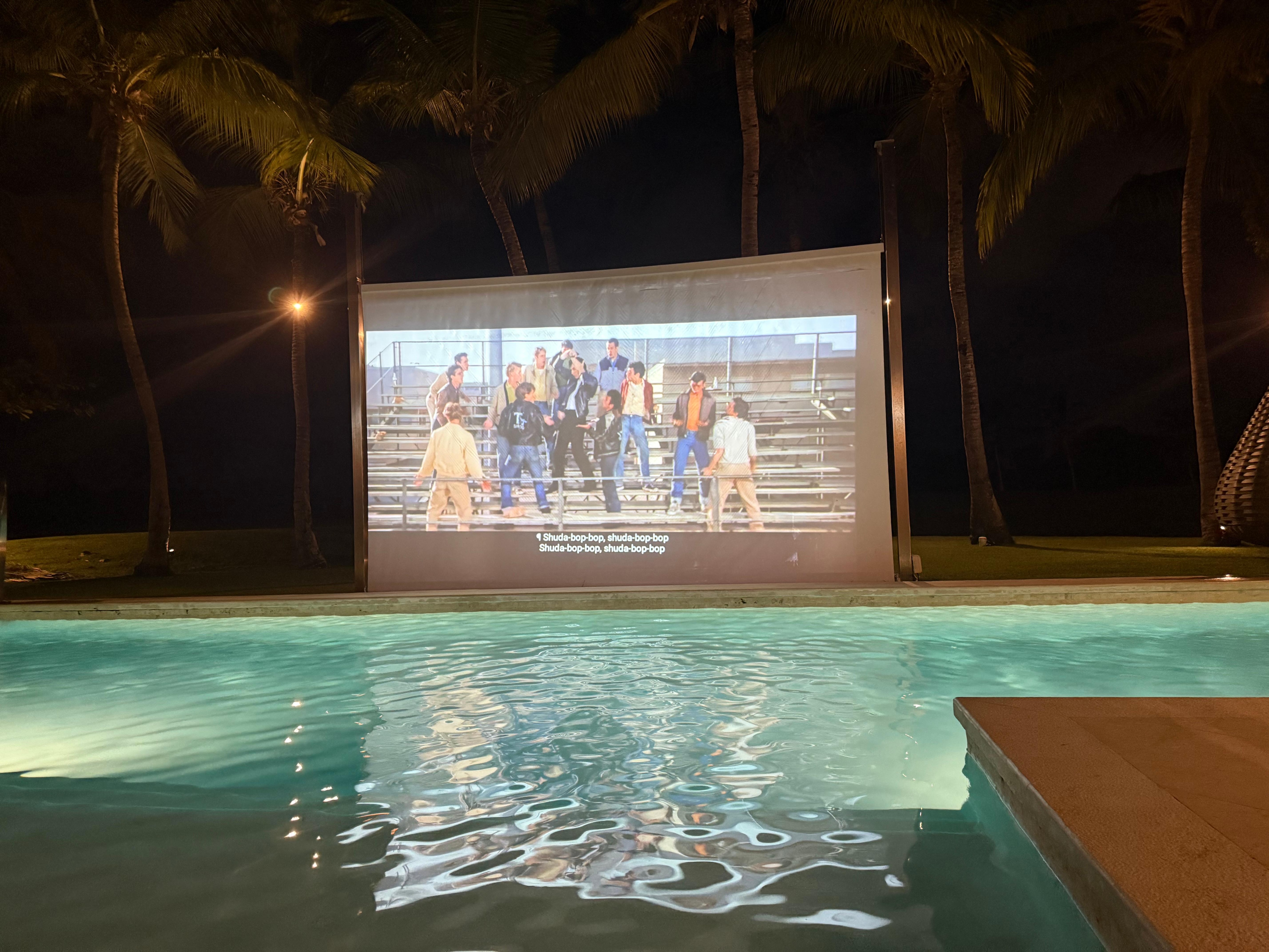 The Dream villa has outdoor movie screen and sound system. The screen can be seen from the pool, lower terrace and upper terrace.