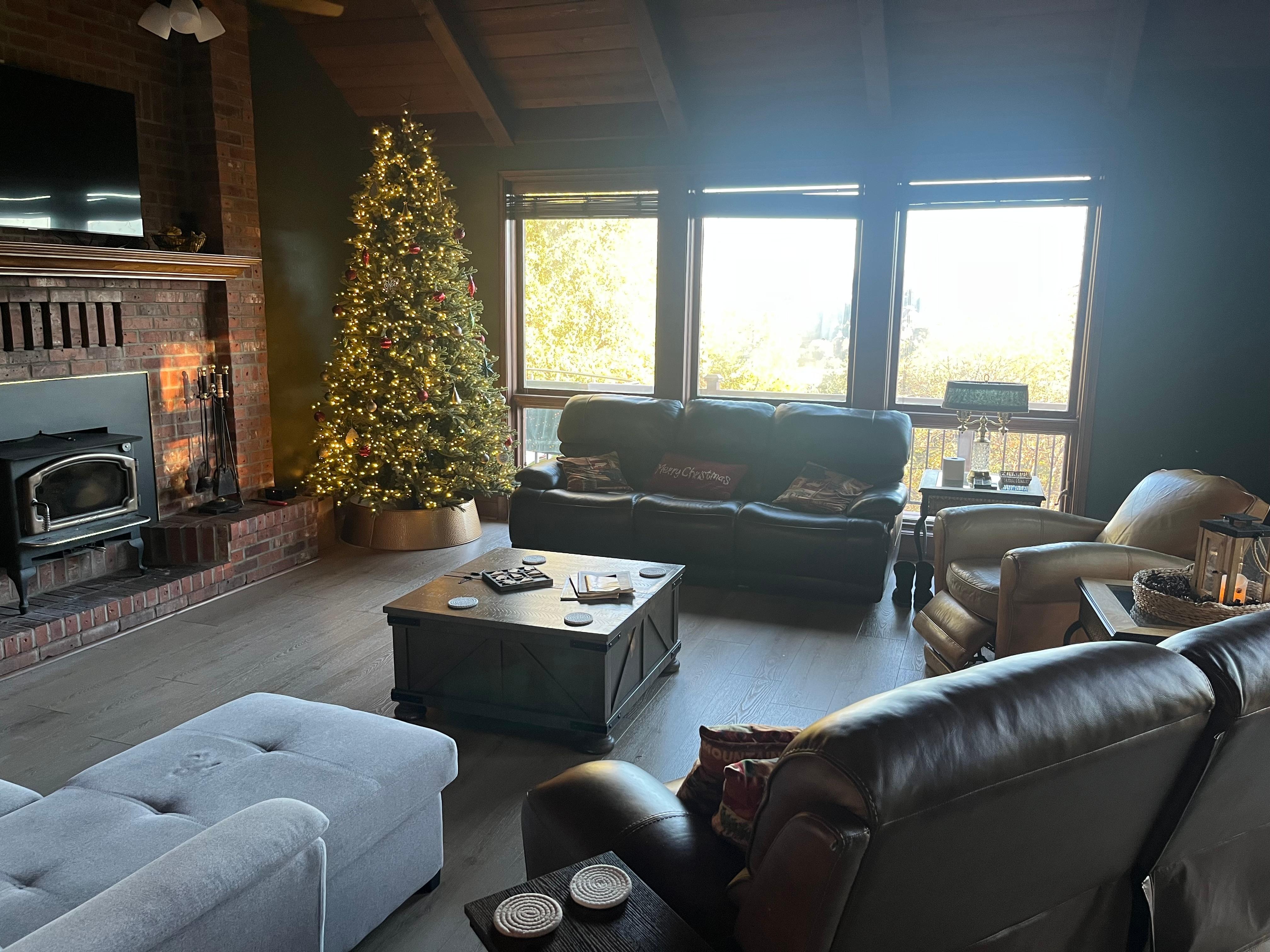 H & L Lodge is a beautiful and private home located on one acre of woodsy property in the Historical Town of Julian. Just a 5 minute walk to the quaint town where dining, wine tasting, gift shops and of course famous apple pie are waiting for you to experience. This spacious home has all the luxuries you are looking for. Open concept living area offers plenty of room to relax and enjoy. Cook a nice meal in the fully stocked kitchen or cozy up in the large living room next to a warm fire and incredible mountain scenery. Drift off to sleep and wake up to the gorgeous views in your spacious yet cozy bedrooms. You may elect to relax out on the wrap around porch where a rocking chair, fresh mountain air and endless views are sure to delight you! The large backyard is sure to impress with gathering areas, gazebo and jacuzzi for you to enjoy. Ready to play? Have some fun while you enjoy the large game room equipped with bar, poker table, shuffleboard, darts, foozeball, arcade games and chess table. Want to bring the outside in? Open the garage doors while you play. Treat yourself to the experience...you deserve it!
