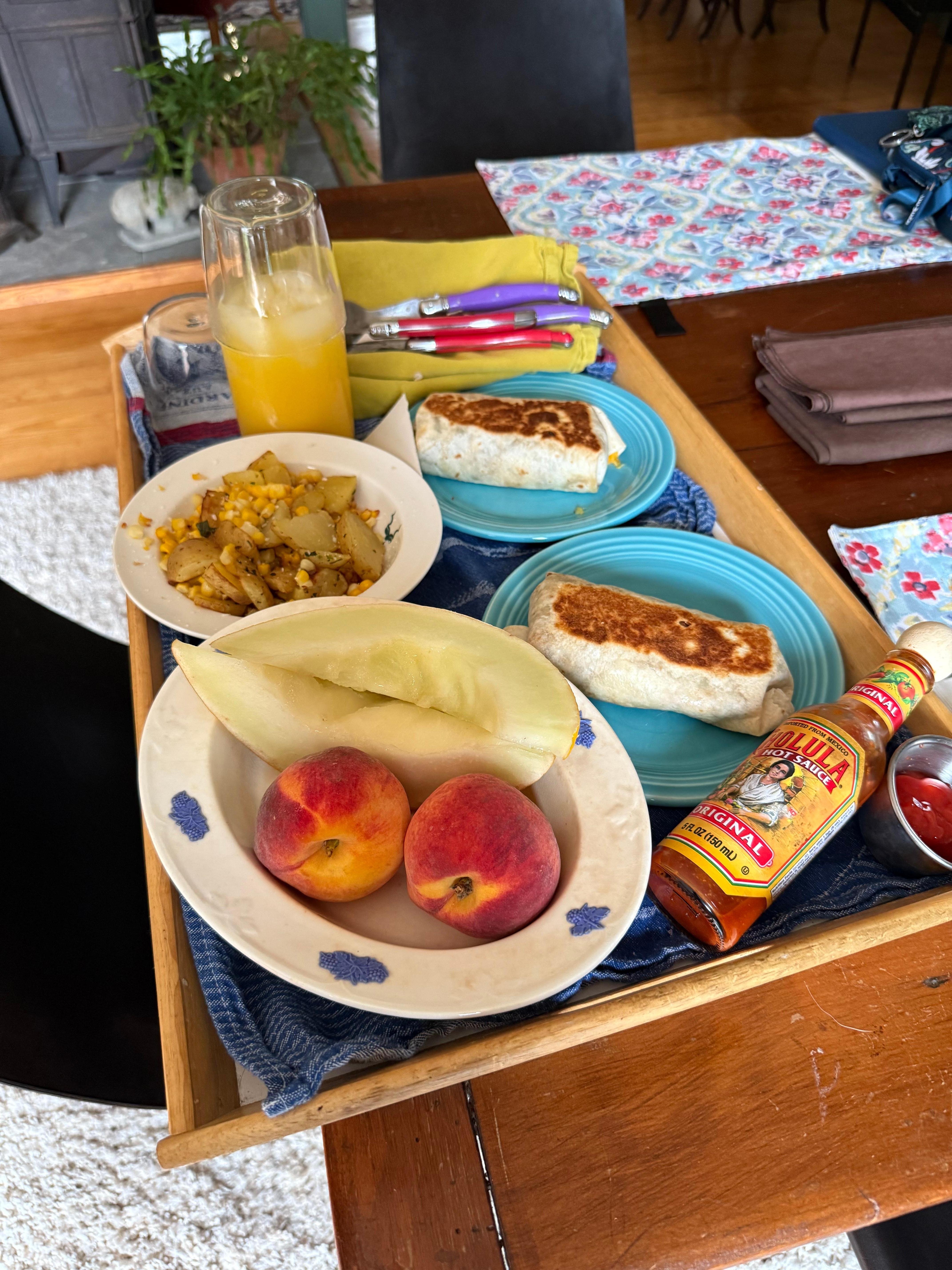 So many people are giving such great reviews of breakfast and I enjoy brightening the morning! When we are here and can offer this free service, we message our guests to let them know when a tray will be put out and ask about allergies.