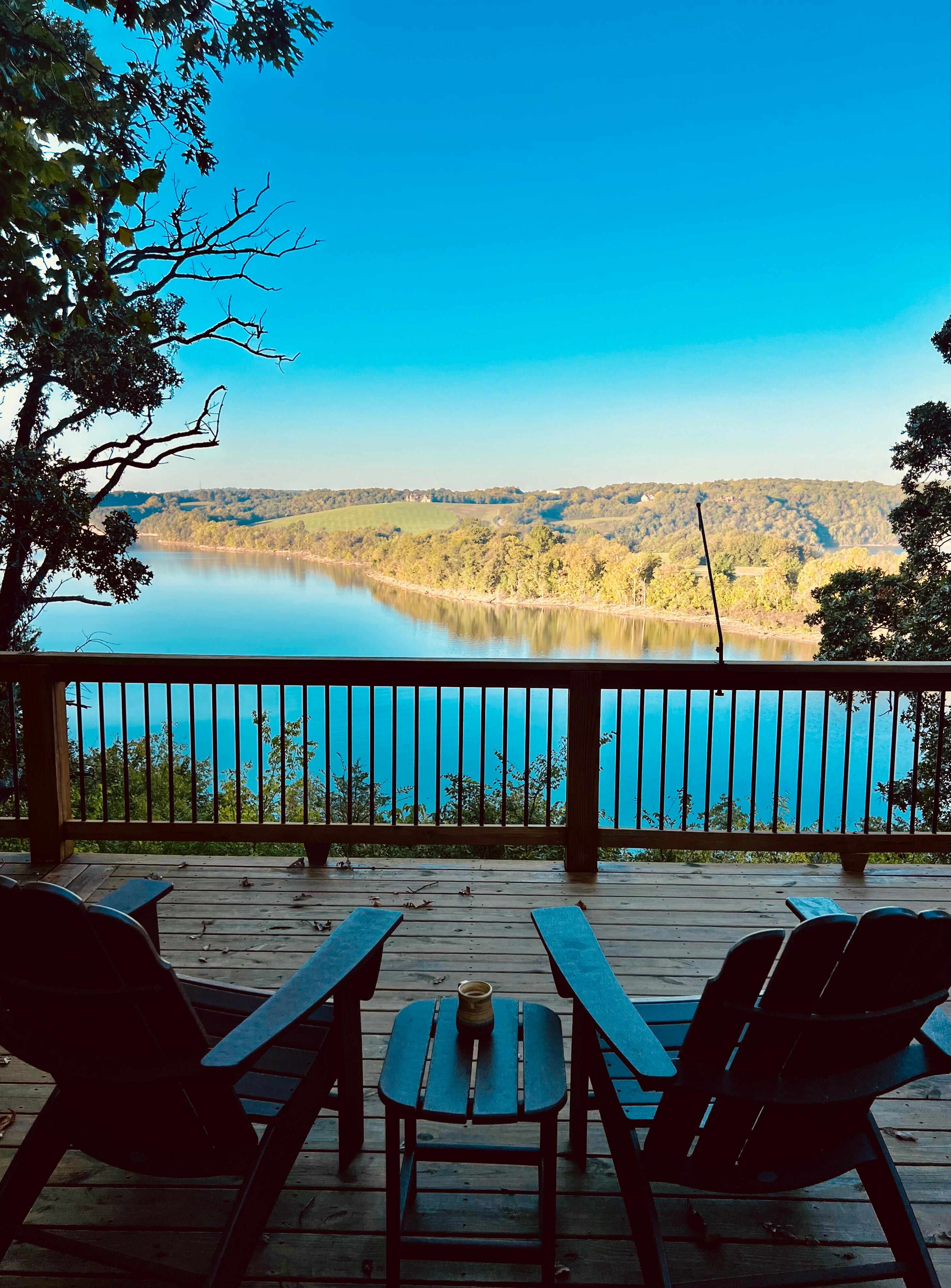 Head out through the glass door in our dining room to reach the back patio. Not only does this space offer sweeping views of Beaver Lake and the Ozarks, but it has a six-top outdoor dining table, two Adirondack chairs and two lounge chairs, a BBQ grill and access to the solo stove (recently added) fire pit area. Out front, you'll find two rocking chairs under the covered patio. Perfect for sipping a cup of coffee on a rainy morning!