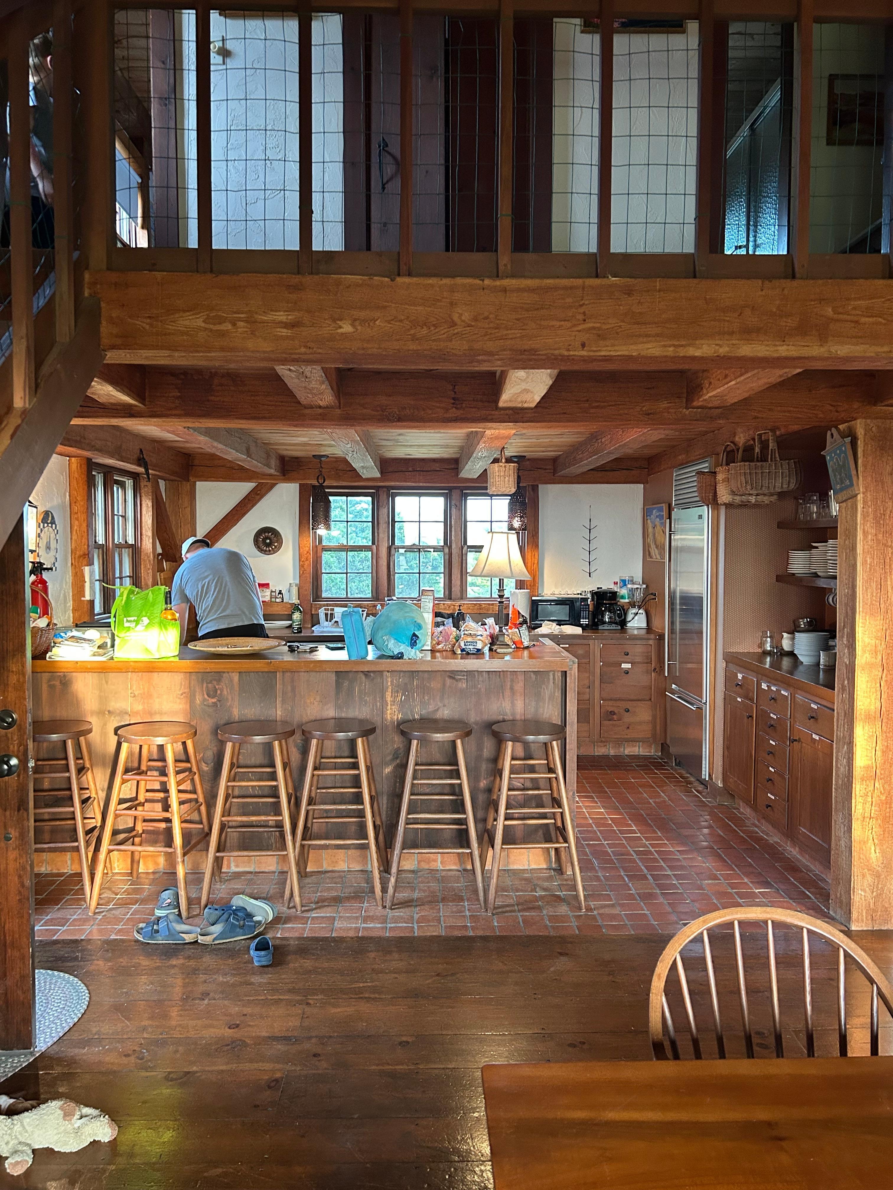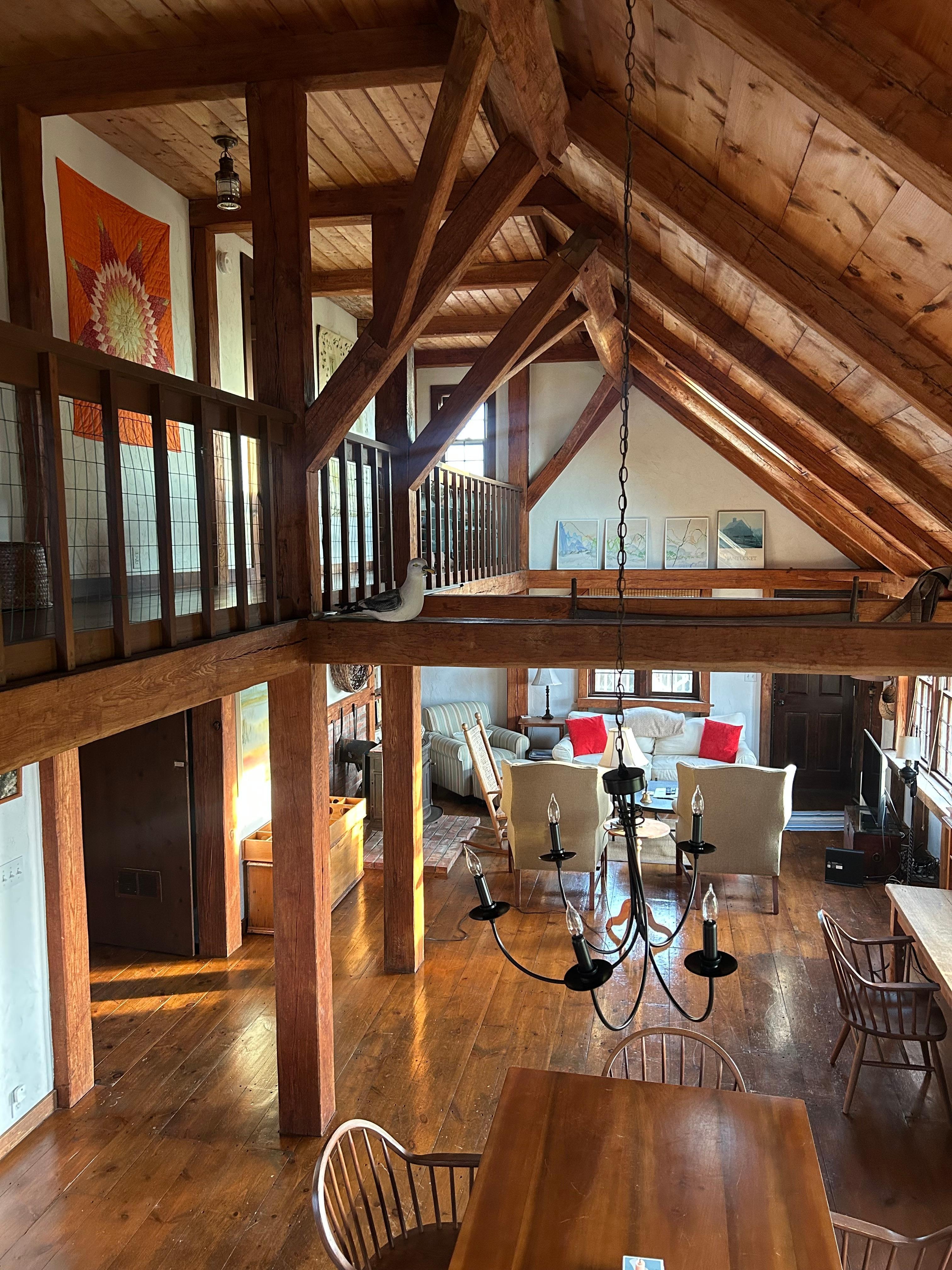 This wonderful Nantucket family home sleeps 7 in four comfortable bedrooms, with 3 additional beds in spacious loft. The master bedroom has a private bathroom, and there is a shared bathroom upstairs. This is a classic, rustic Nantucket post-and-beam saltbox design with rough-hewn wood beams and open-vaulted living and dining areas adjoining an entertainment-friendly kitchen. The house is privately located at the highest point on the west end of the island. The dining and living areas and back deck overlook 50 acres of unimpeded conservation land and Nantucket Sound.