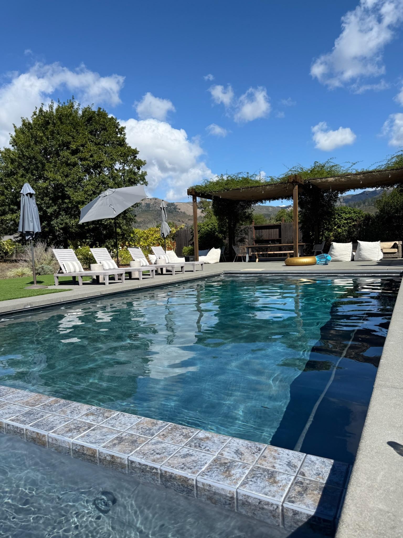 Sonoma Valley Villa can comfortably accommodate your group of up to 10 guests. Gaze at the sunset over the neighboring vineyards from the expansive decks surrounding the house. Lounge for hours in the swimming pool which is heated to a comfortable temperature all year round. Enjoy the large in-ground hot tub or gather around the fire pit for endless night skies and create life-long memories.