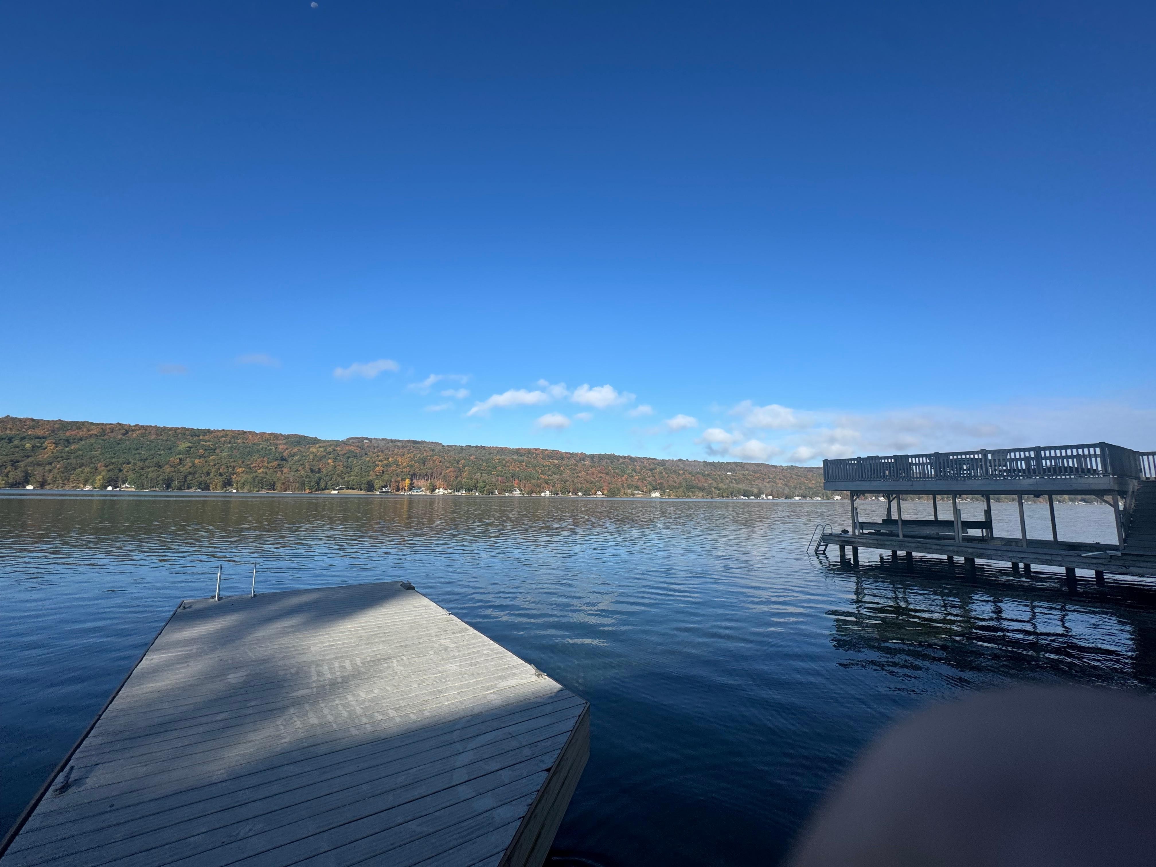 Hazy Daze is a great spot on Keuka's East Lake community! This home has 5 bedrooms with all of the bedrooms and living spaces arranged so that they have views of Keuka Lake. The home sits up on a slight knoll giving it a birds eye view of the lake below. With 20' of it's own private lakefront, dock, and pebble beach area, you'll be able to get in the water as well and not just enjoy the view of the lake from the house!