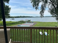 Large deck overviews the lake. 6 ppl dining table with umbrella.
