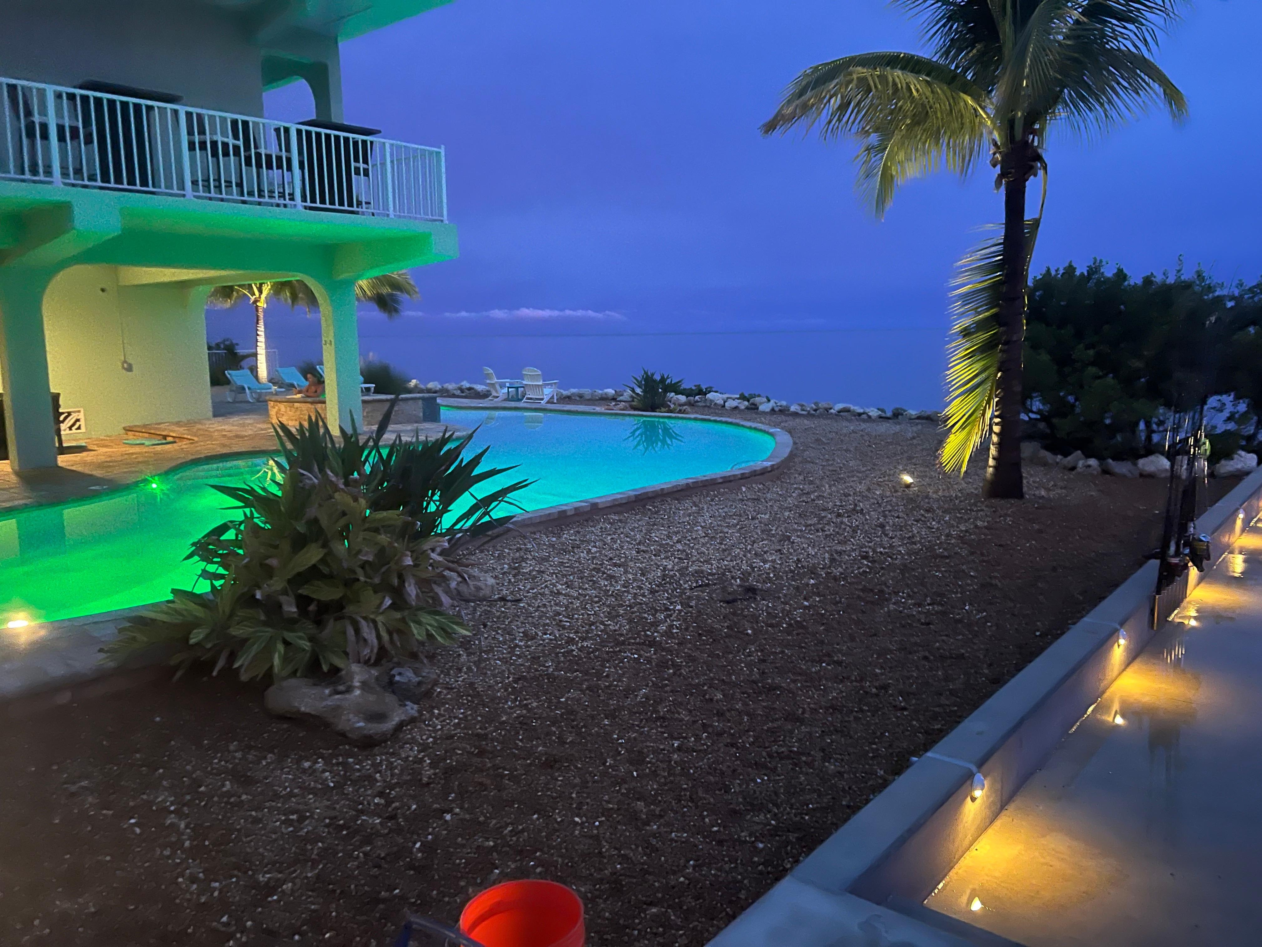 Returning from a day of boating, snorkeling, diving, or fishing you'll drift into the pool or relax with a cold drink in a private tropical oasis under the tiki. Lay back and enjoy the view across the pool and beyond, as you soak in a hundred shades of blue and green across miles of open water - it's a relaxing and mesmerizing way to finish each day!
