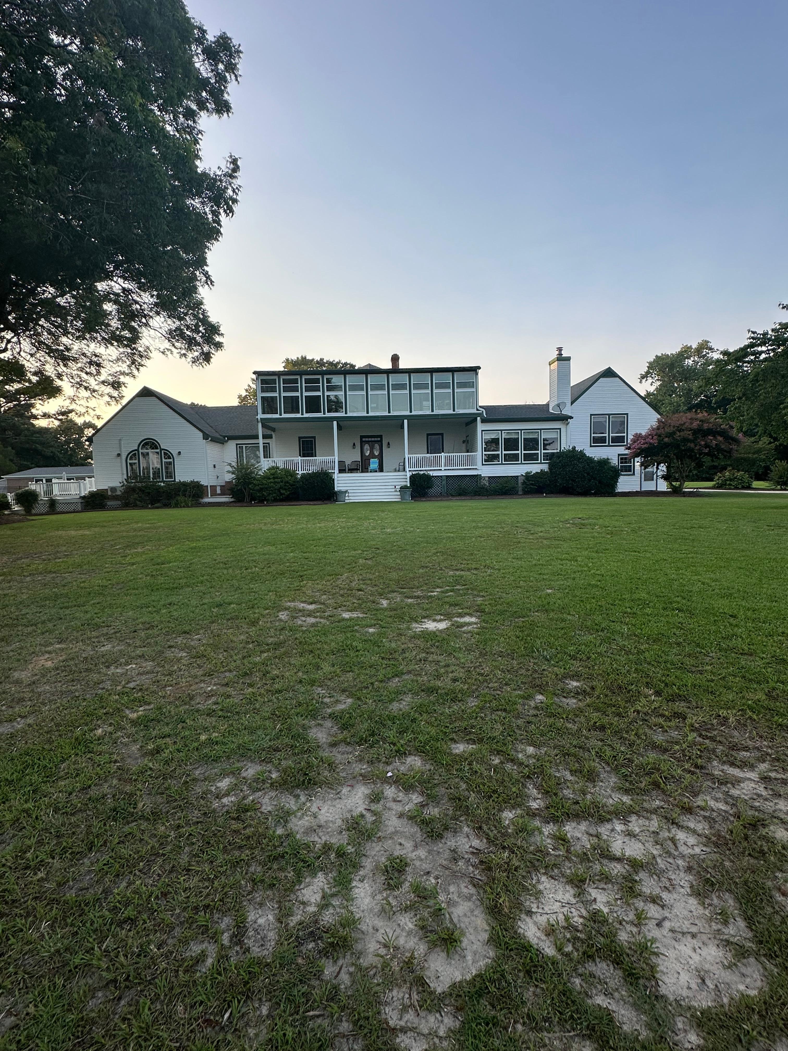There comes a time when you need to pamper yourself. Grandview Manor offers you this opportunity. Imagine a vacation where the hustle and bustle of vacation angst is not felt or even thought of. Awake in the morning with a view from the Master suite of your private riverfront where the nearest person is nearly 1/4 mile away from you, your coffee is fresh, steaming and the morning dew is still on the ground. As the day warms up your biggest decision is whether to cross the compound to play tennis or go for a swim, or maybe if fishing is more to your liking, then stroll out to your 100 ft pier and cast a line. You may catch a mouth-watering flounder, a puppy drum or maybe some delicious Chesapeake Bay blue crabs. The end of the day may begin with a toddy on one of the grand porches as the water in the Jacuzzi fills waiting for you.