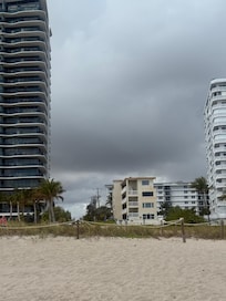 WE ARE DIRECTLY ON THE BEACH!! STEPS TO THE OCEAN! A FULL KITCHEN , HEATED POOL STEPS DOWN TO THE BEACH, FREE PARKING IN FRONT, ELEVATOR! Our pictures are current.