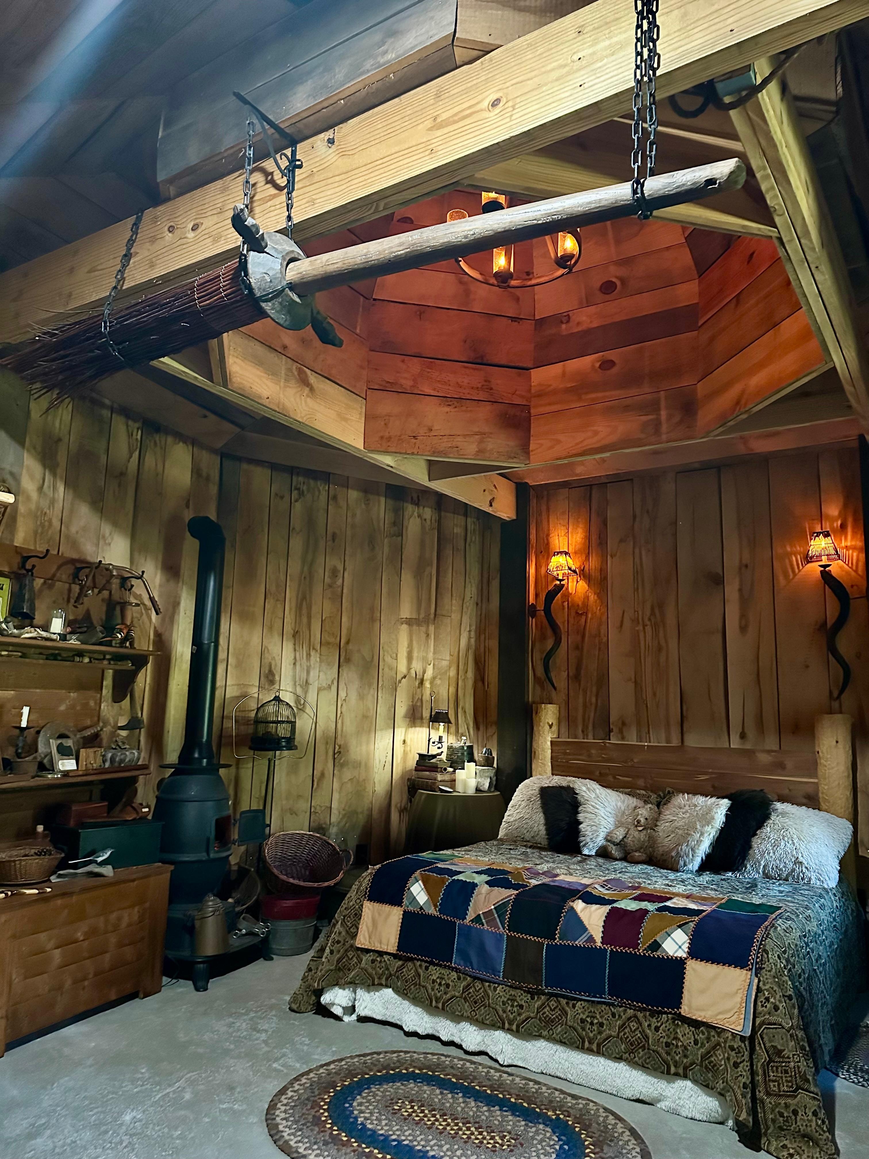 Come stay in our favorite Groundskeeper's Hut at Fable Realm! The Keeper of Keys' Hut is set on our private 40 acre location. Try your skill at the scavenger hunt, relax by a fire outside (giant-sized cauldron ), watch the birds enjoy the pond from outside of this magical stone space just down the hill from The Burrow, and near Fairytale Cottage. Visit nearby Lookout Mountain, Chickamauga, Chattanooga or just RELAX and watch Harry Potter documentaries while enjoying a cold Butterscotch beer!