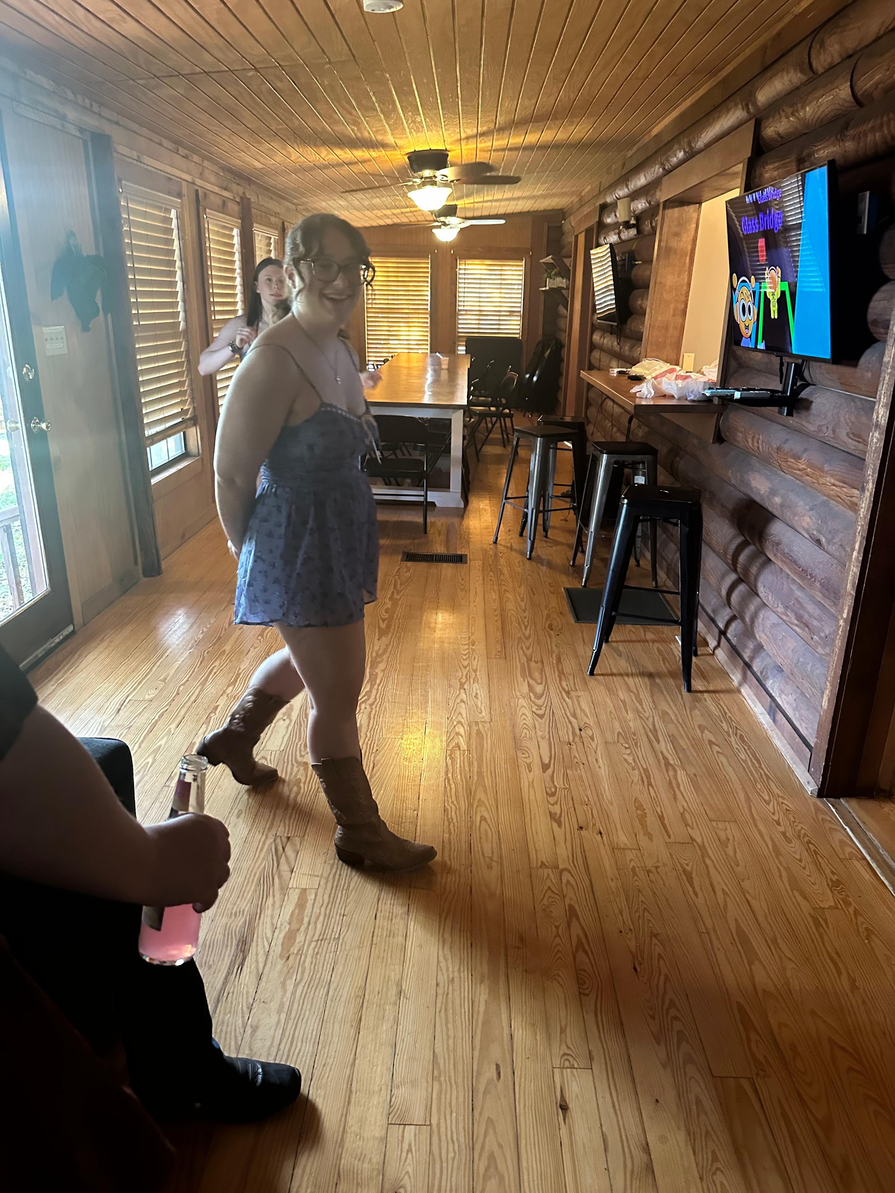 Large windows throughout create a year-round quality living experience. The fully equipped kitchen and large dining area between the 2 wings of the log house make this dwelling the perfect spot for food gatherings. 3 Flat screen TVs in the dining area. Entry way sitting room and just off the kitchen is a full bath with shower tub combo. Charcoal grill for grilling up some Texas BBQ!