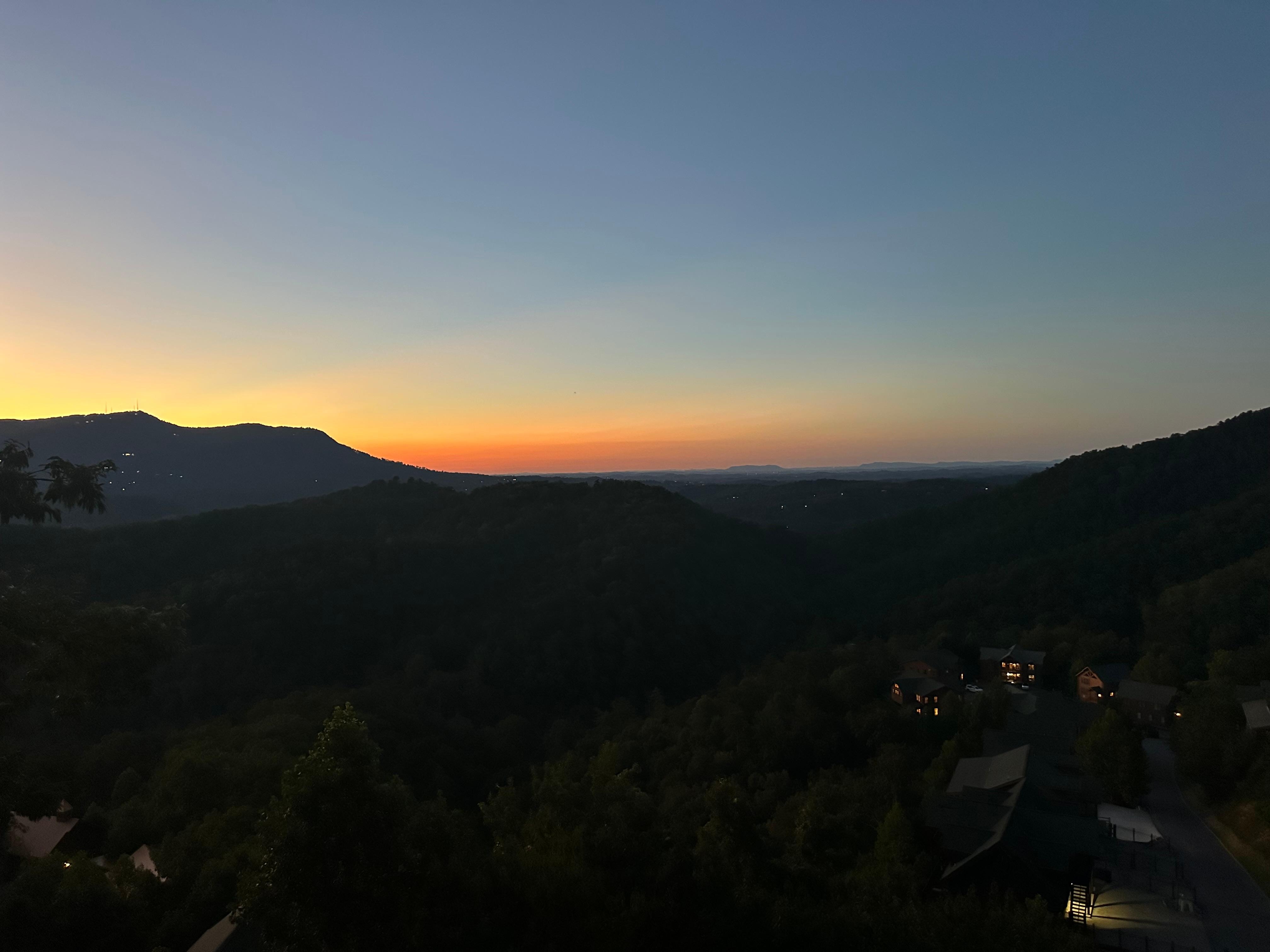 ☆☆☆☆☆ "My kids loved the huge bunk beds and the amazing game room! I loved that they had their own bathroom. My parents stayed in the upstairs bedroom with the king bed and they enjoyed waking up to a beautiful sunrise every morning. My husband and I stayed in the bedroom by the living area, all the beds were very comfortable. The trees in front of the cabin have been trimmed so the view is unobstructed, unlike neighboring cabins. The parking is easy and not on a hill. The owner is quick to respond with questions and checked to make sure we had everything we needed. The hot water is hot and the air conditioner is cold. The cabin is located within a few minutes of all the fun things in pigeon forge but still had amazing views and a quiet environment. The balconies had plenty of seating and was a great place to drink my morning coffee. We definitely enjoyed our stay!" - Tiffany