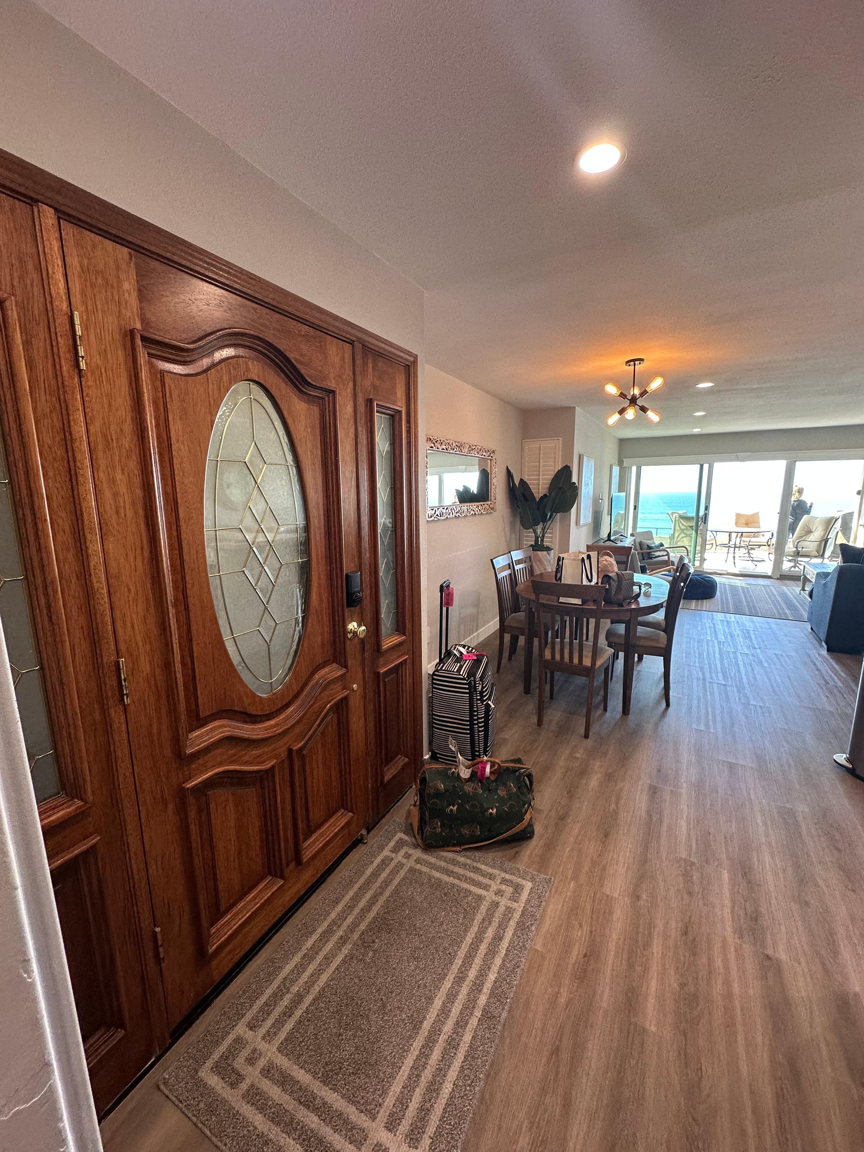 Brand new! 2 bedroom 2 full bath condo. Beachfront 180° view. Just steps to the private beach. Be the first one to stay at this completely remodeled brand new top to bottom . The Del Mar Beach Club Ocean front complex features 2 tennis courts, 4 pools, spas, gym and sauna, along with direct access to beach. 2 assigned covered parking. 1 pet is allowed.