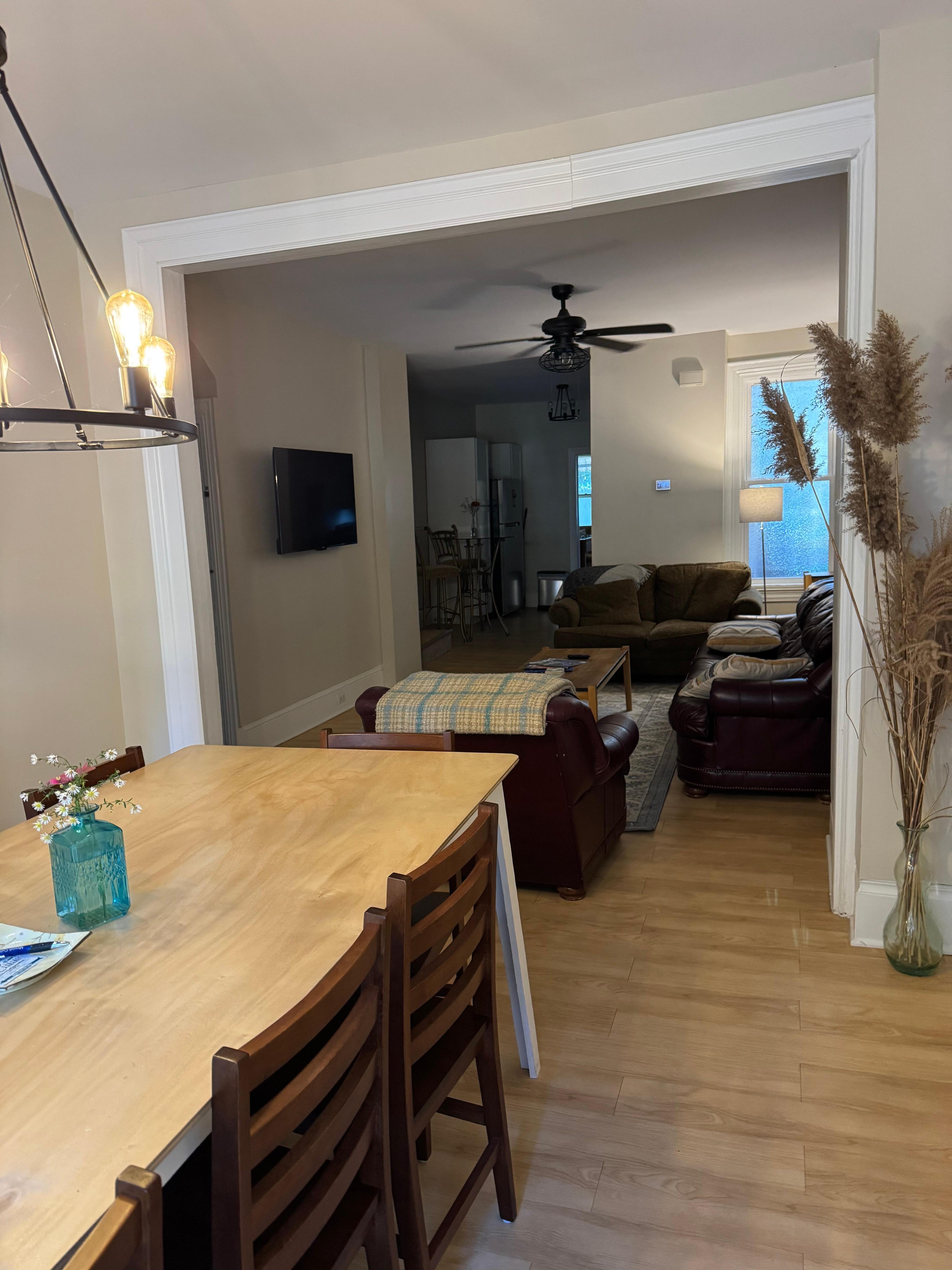 Enjoy easy access to everything from this perfectly located home in charming historic Midtown, Harrisburg. Half a block from the gorgeous Susquehanna River, our beautiful and spacious 3-story home has original artwork and unique touches throughout. Dine in with our newly renovated full kitchen or walk to one of the many restaurants nearby. Our fenced in backyard and seating area is a major plus in the city, not to mention a reserved off-street parking space is included as well. Our house has central air throughout and a supplemental window unit for the 3rd floor loft.