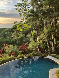 Did we mention the pool? Once in, you'll never get out of this infinity-edge pool. Just three steps from the villa, the turquoise tile blends into the dazzling coastline and the popular Uvita 'Whale's Tail', a unique place to walk and explore. It overlooks Ballena (which means 'whale') beach National Marine Park so keep your eyes open for Humpback whales and Bottle-Nosed dolphins in the bay during whale season.