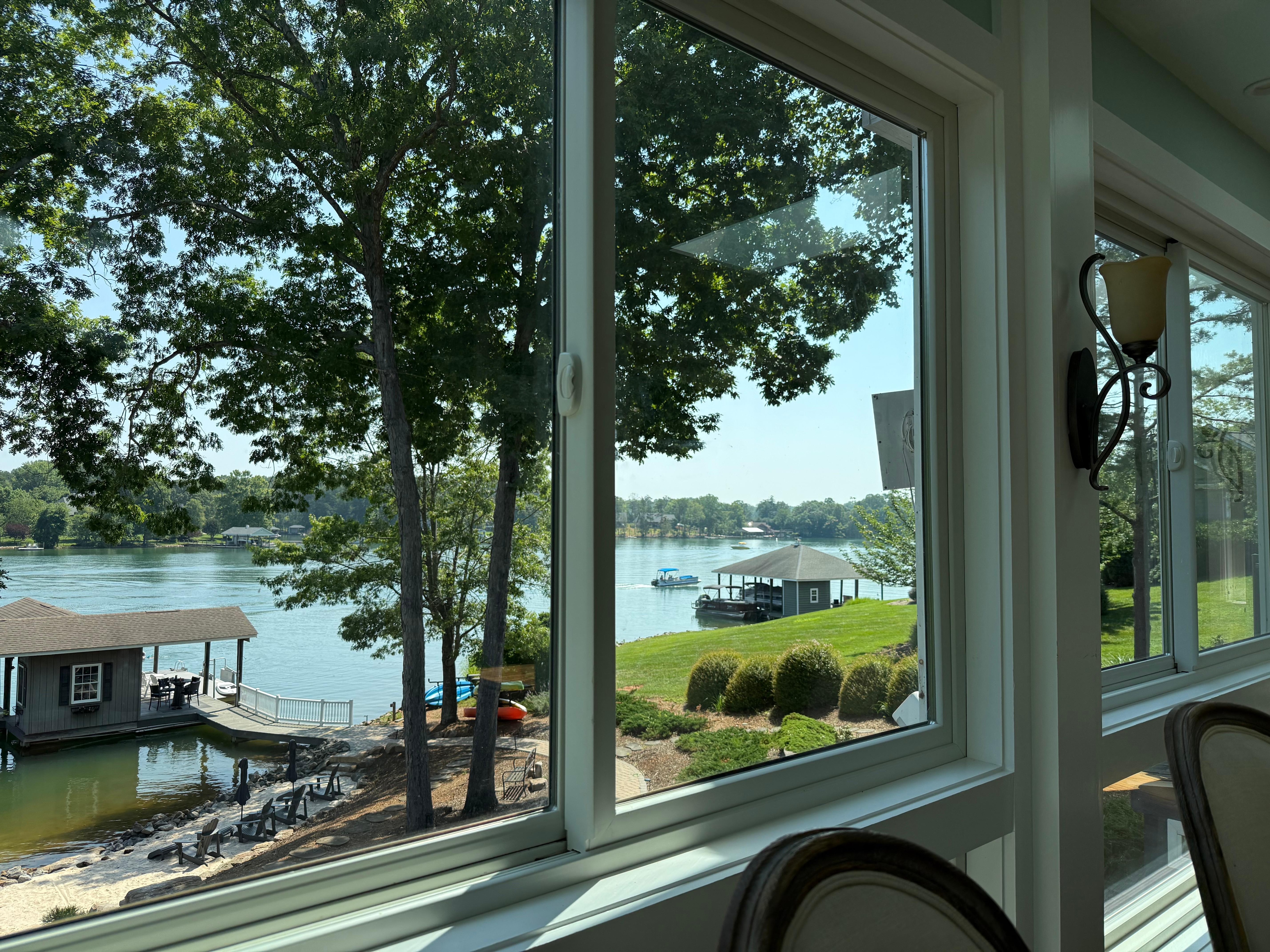 Beautiful home with unique layout giving both private space with large rooms as well as large gathering areas, and various nooks for more cozy settings. The main living area boasts a 25' high ceiling with views directly to the lake. There are two fully stocked full kitchens (one upstairs, one downstairs) giving great flexibility for mass cooking and/or separate hanging out. The two refrigerators with a 3rd freezer in the garage gives ample room for groceries. Covered morning room offers full lake view for early morning coffee, or for large seating meals. Unique bunk bed rooms gives special memory to younger guests, with additional play spaces for little ones. The lower level has a large couch designed for multiple seating for movie watching, etc., and can also be used for an extra sleep space.