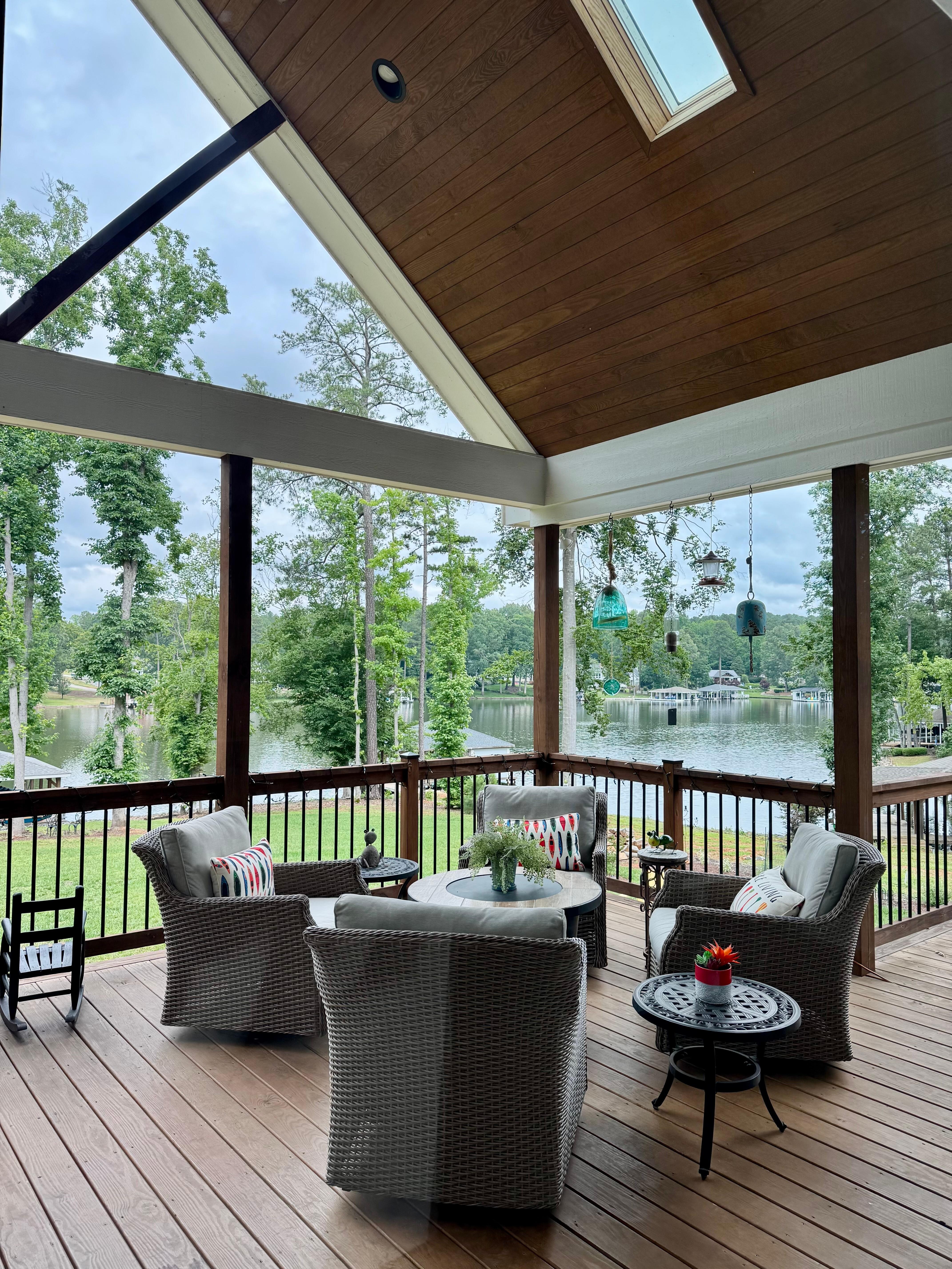 Cold(er) weather amenities include a gas fireplace in the living area, propane fire pit on the deck, real wood firepit in the back yard, HDTV on the dock (think outdoor football viewing while surrounded by water and Fall weather), and year-round wildlife viewing that we cannot take credit for but is a part of what makes our home so special.