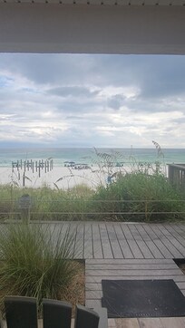 Bypass the stairs and elevators and walk right into this first level retreat! Enjoy watching the game or eating meals while staring at the beautiful Gulf of Mexico or walk out the back of the condo and be on the sand in seconds. Crystal Sands 107A is a beautifully appointed one-bedroom beachfront unit that can comfortably sleep 6 guests. The Master Bedroom has access to the full bath, king size bed, decorative art and furnishings that all work to create a charming Floridian ambiance. A half bath off the hall serves as a convenient powder room. With bunkbeds in the hallway and a Queen sleeper sofa in the living room, your whole family will have room to enjoy some much-needed rest and relaxation.