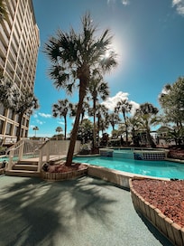 We have a modern cooktop and microwave for entertaining guests as well as modern TVs to watch your favorite show. Beach Cove is the perfect location and is close to everything. It is right at the southernmost tip of north myrtle beach so you can enjoy both central myrtle and north myrtle activities that are just a quick drive away. This condo has incredible views! Located on the 4th floor, you can enjoy beachfront views from both the 4th-floor balcony as well as the living area. Enjoy the outdoor heated pools(even in the offseason), lazy river, shuffleboard, and a cold cocktail at the outdoor Tiki Bar.