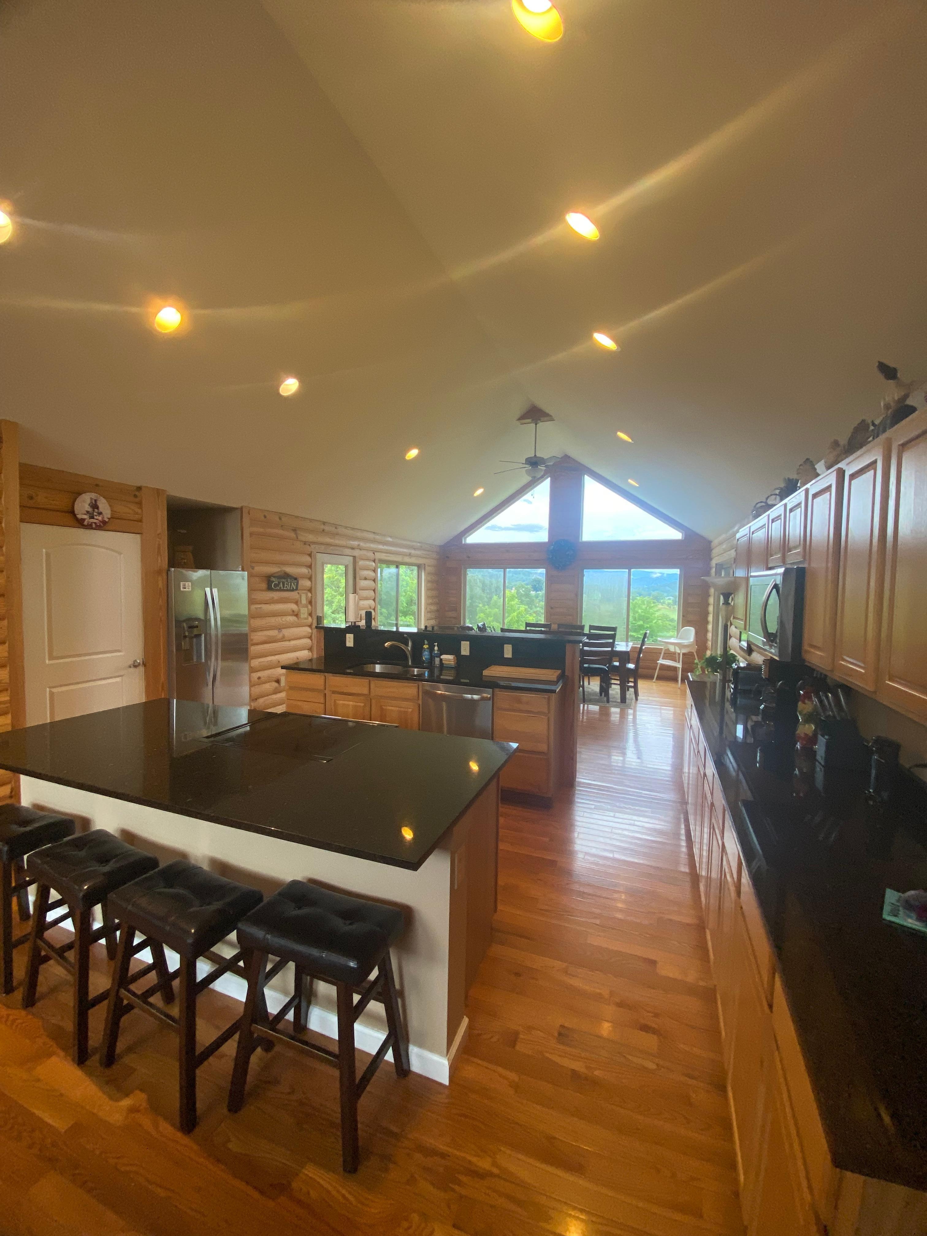 New Cabin offers black granite countertops, hardwood & ceramic tile flooring, pool table, horse shoe pits (bring your own horseshoes), gas grill, and much more!