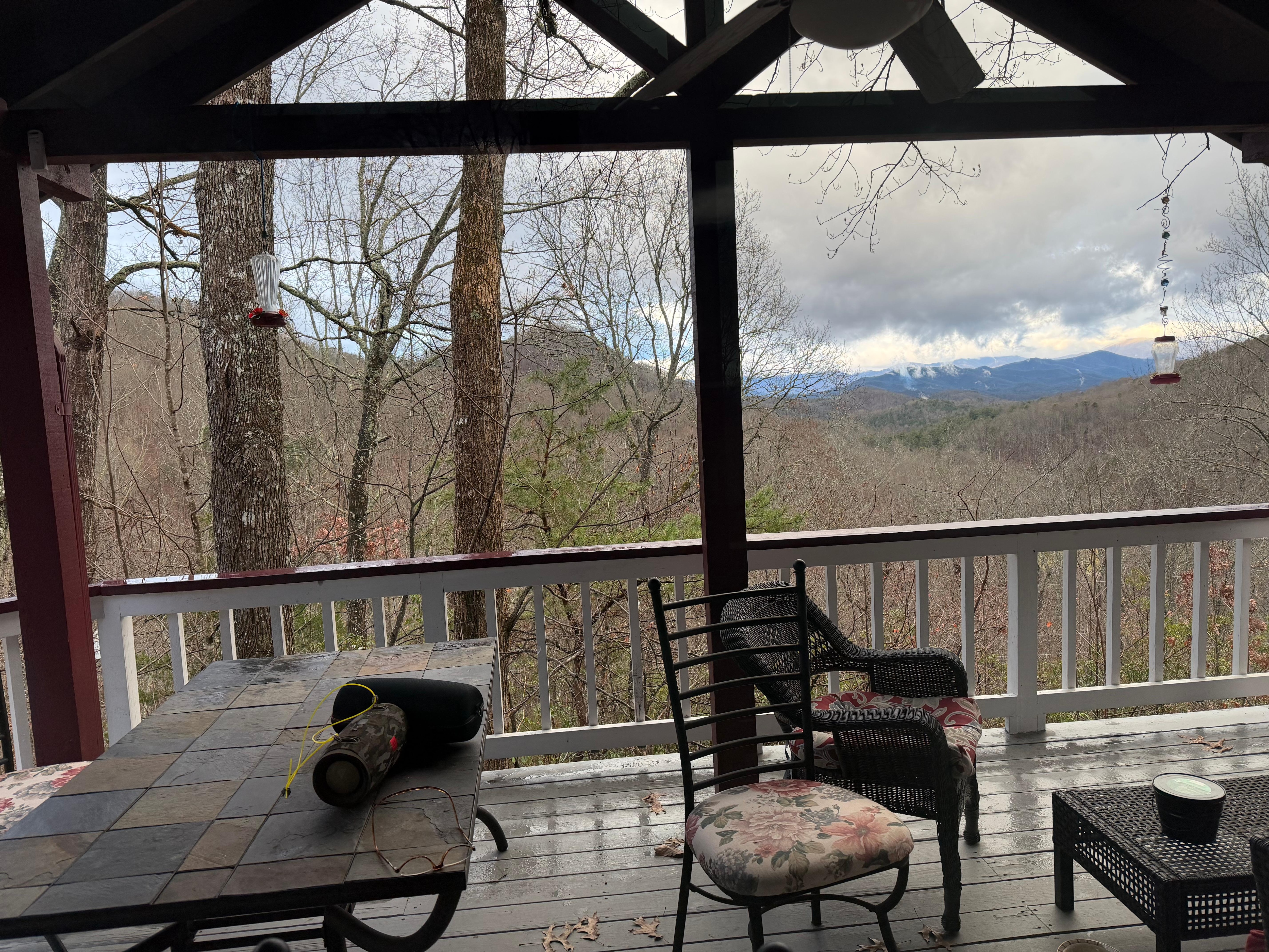 Morning, noon or night you will enjoy the phenomenal view from the multi-tiered decks of this beautiful mountain retreat. Sitting on the upper deck gives the feeling of being in an treehouse. Our 2500 square foot house features both open and covered decks for outdoor fun. There are dining tables, porch chairs and a gas grill.