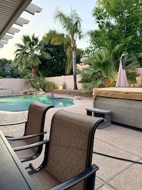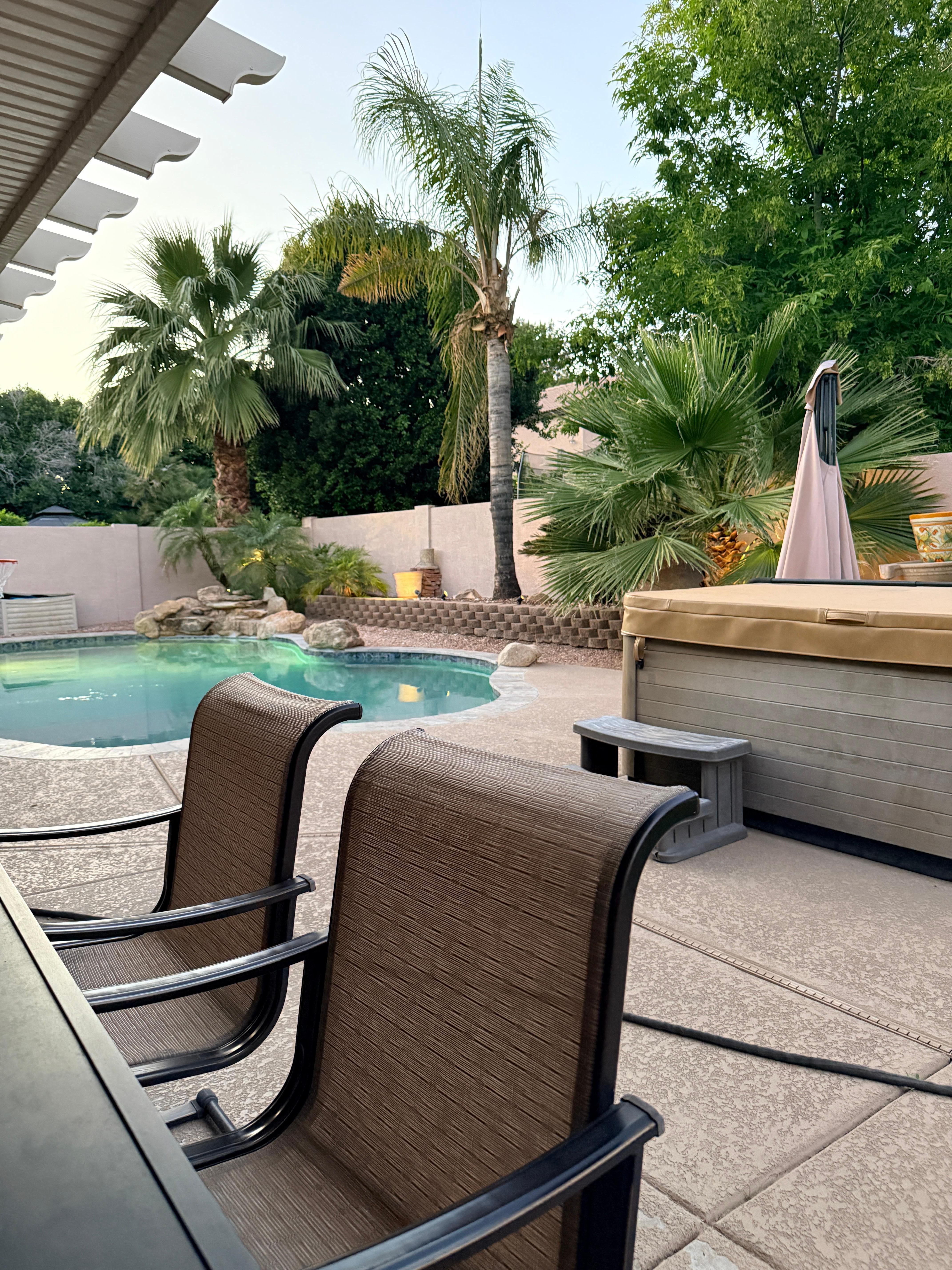 Come visit our charming 4 bed, 2.5 bath, 2850 sq ft home. Plenty of room for the whole family sleeps 8. The home features plenty of fun things to do. Gorgeous pool and hot tub to top the list. Nice outdoor BBQ area with two tables situated for outdoor dinning in the shade. Home also has pool table inside with a comfy living room to mingle in. Home is close to Top Golf and Old Town Gilbert. Plenty of golf courses and shopping nearby. New Mesa Wave Park. 25 short mins from airport.