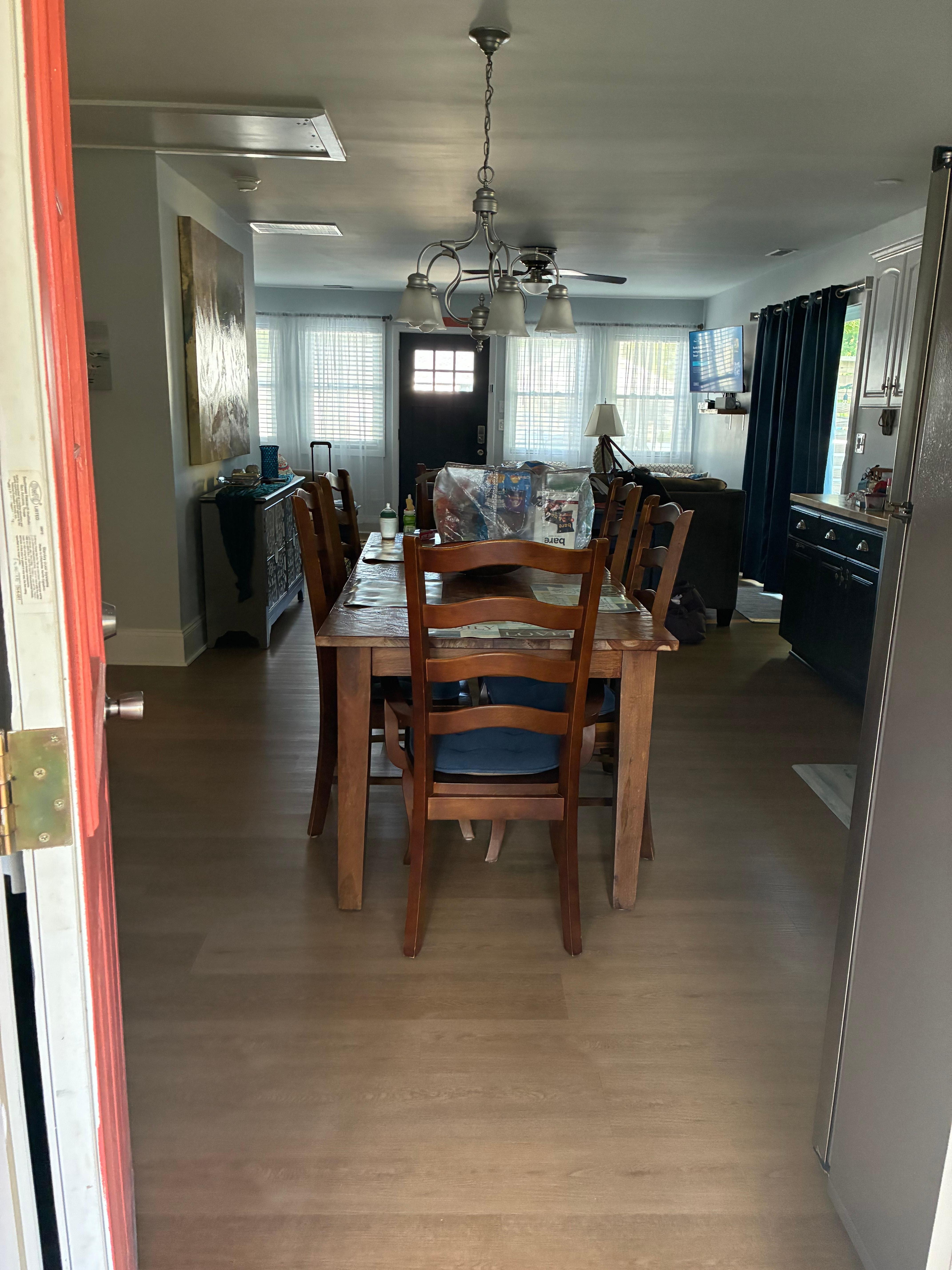 Three bedrooms, two baths, sleeps eight, (five adults and 3 kids, two queens, one twin over full bunk bed and a futon) with a primary suite with a private bath. TV with cable in the open concept living area, fully appointed brand new eat-in kitchen, deck with table and umbrella, screened-in covered porch with outdoor seating area. Bikes and helmets, beach chairs and beach umbrella, beach toys, propane gas grill, off-street parking for 3-4 cars, ceiling fans and tvs in all rooms, washer, dryer, dishwasher, unlimited Wifi included. Netflix available at no charge. Ten minute car ride from the bustling activities and fun of historic Cape May and fifteen minutes from the excitement-filled boardwalk in Wildwood. Sheets and towels not provided. Saturday to Saturday rentals from mid June to mid September (with some exceptions), occasional 3-4 night stays. This property and the surrounding area must be seen to be appreciated, come experience the natural beauty that abounds!!
