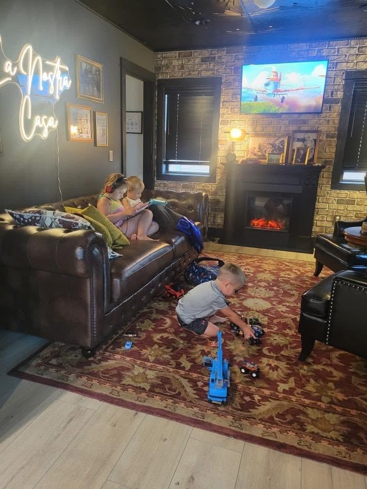 The dining space has seating for up to twelve (extra chairs in the master bedroom closet), which leads you into the social media worthy Prohibition/Speakeasy room. Take some pictures in front of the neon sign, turn on the fireplace and watch a movie. There may or not be a place to take some fun mugshots too - have fun and enjoy!