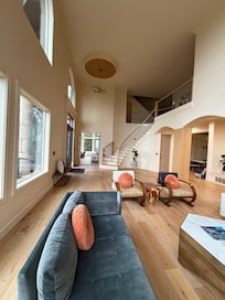 Private, peaceful, and perfectly located. Wake up to breathtaking Columbia River views through floor-to-ceiling windows, cozy up by the fire, or gather on the patio surrounded by nature. Just minutes from downtown Camas for dining and coffee, and a short drive to PDX, Mt. Hood, and the Gorge’s waterfalls. Whether it’s a family getaway, friends’ trip, or quiet retreat, this home offers space to relax, reconnect, and take in the beauty all around.