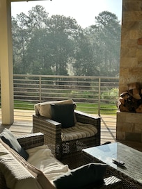 In the mornings, you may hear the soft call of wild turkeys in the distance or catch close-up views of deer grazing in the open meadows that surround the home. In the evenings, relax on the open-air wrap around porch beside the fireplace and listen to the barred owls calls echo throughout the creek bottom. Explore the great outdoors and adventures that await as you hike, bike, or cruise the endless trails and babbling creeks throughout the property.