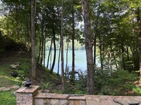 We love this property for it's secluded feel and gentle slope to the water, no steps. That is much better for us flat landers. As we turn into the top of the driveway from the road we see our decorative gate and the emblem that says "Est. 1998". As we drive down the 1st part of the drive we are closed in by the beautiful and thick leyland cypress trees that line the driveway. It isn't until we make that first turn that we see the lake and the house. It's always a "wow" moment. The newest feature is the porte-cochere that we just built. A place to park the car without the rain or snow falling on us and covered steps to the front door. The concreted drive make is a breeze to get in and out of the drive now with our 4-wheel drive vehicle. Once we open the front door and walk into the house there is this expansiveness with windows all looking out to the back and the lake. We love the coziness of the exterior gas burning fireplace on the enclosed porch, the wood burning fireplace in the living space and the wood burning fireplace in the back overlooking the lake. The three levels give it the feeling like you may be the only one there while groups of people are playing pool and watching TV on the lower level, some napping in the upper level and hanging around the kitchen and the living space on the entry level. The enclosed porch is where I am most of the time, either reading or browsing the internet with a glass of wine and some cheese and crackers.