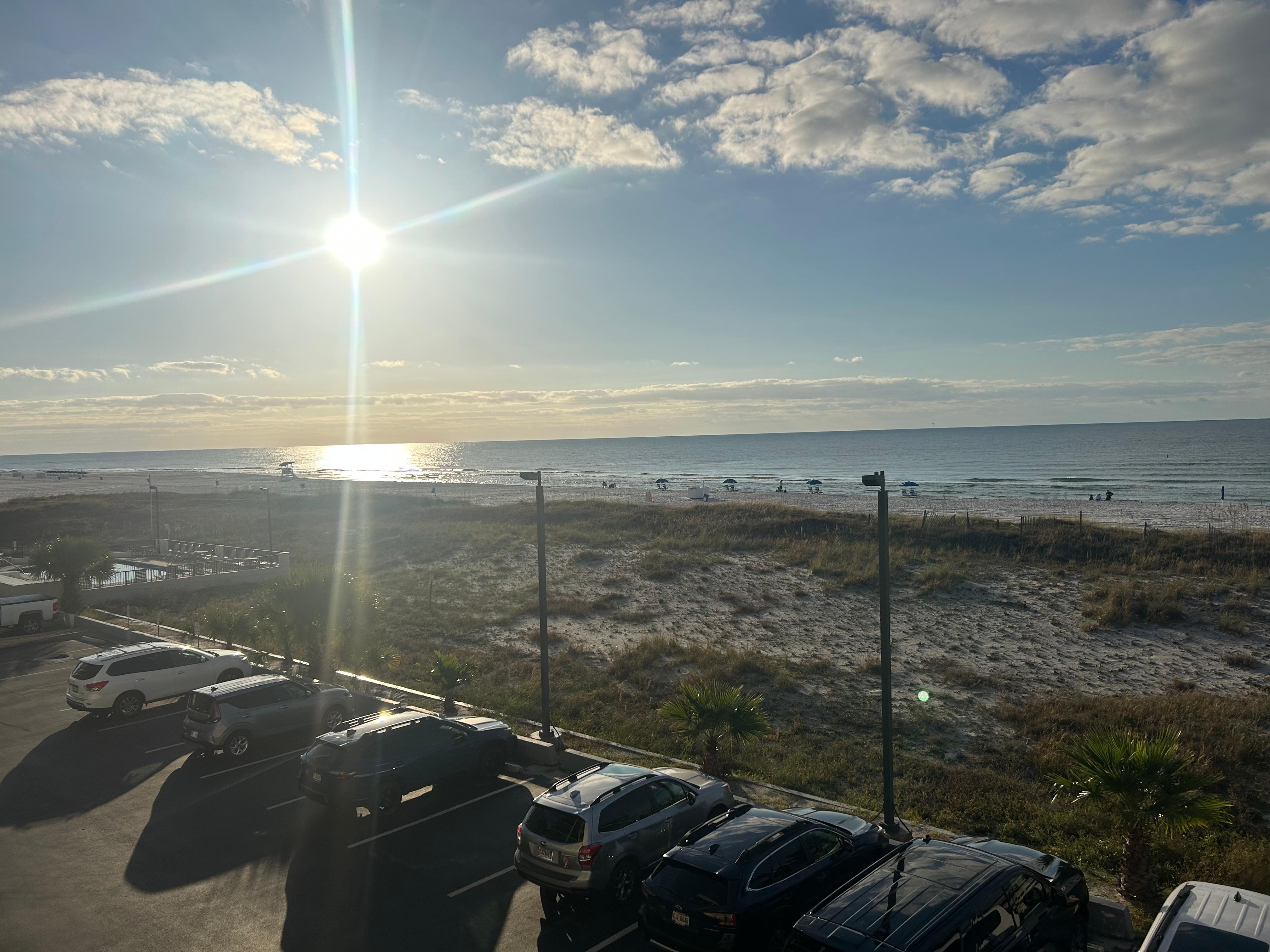 We loved this condo. Well maintained, ocean view, and just a block from restaurants. WONDERFUL air conditioning!! We could see dolphins in the morning. The resort was busy but not crowded. The only negative was it was not clear as to where we needed to go to buy a parking pass. Called the management for the condo, they never called back. We found out we're to buy the pass by asking another guest.
