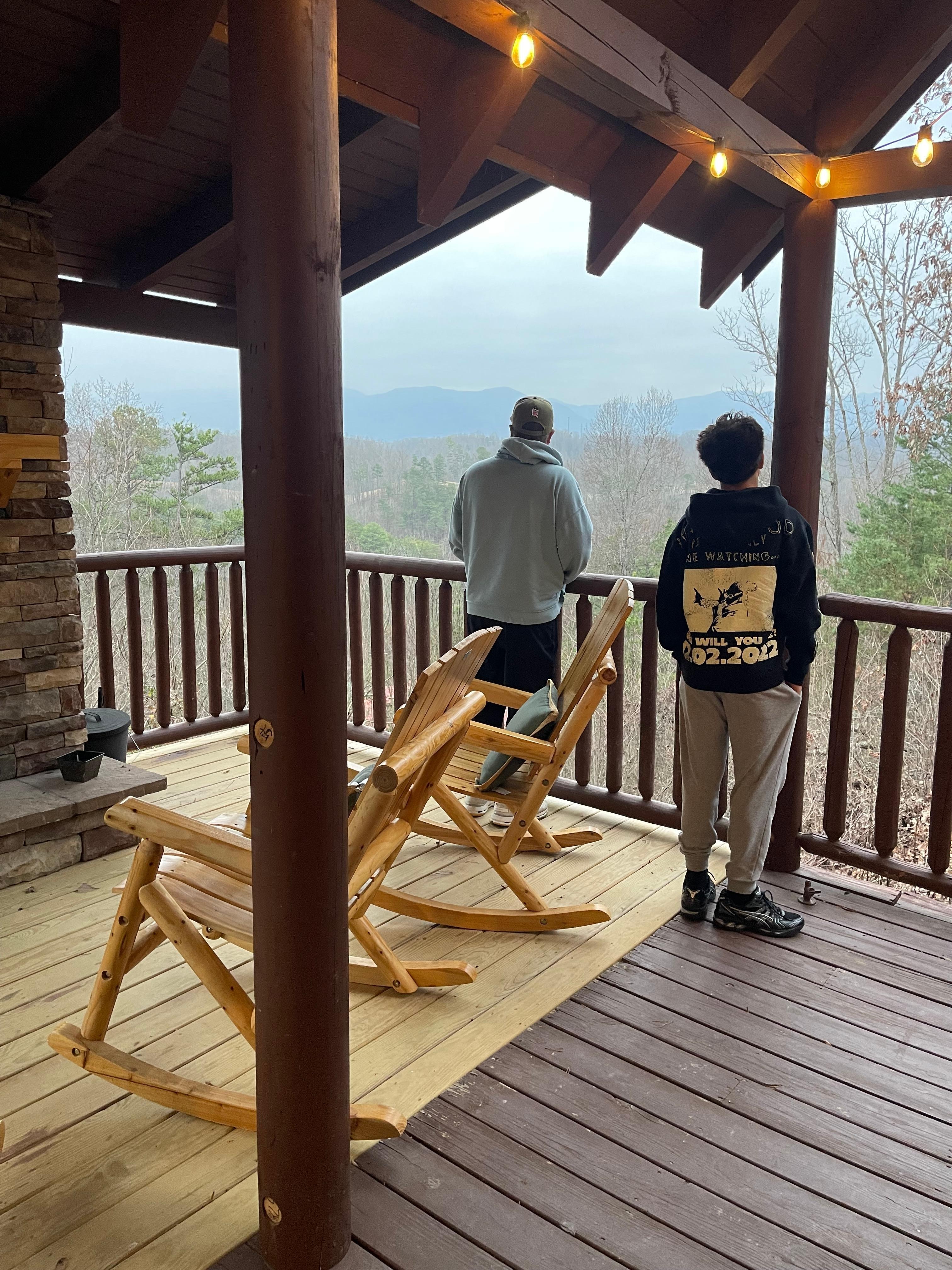One word-Views! This cabin has spectacular mountain views visible from most of the cabin. It has soaring, exposed beam ceilings, multiple fireplaces, spacious hot tub, jacuzzi tub, games, and more! Everything you could want in a mountain get away.