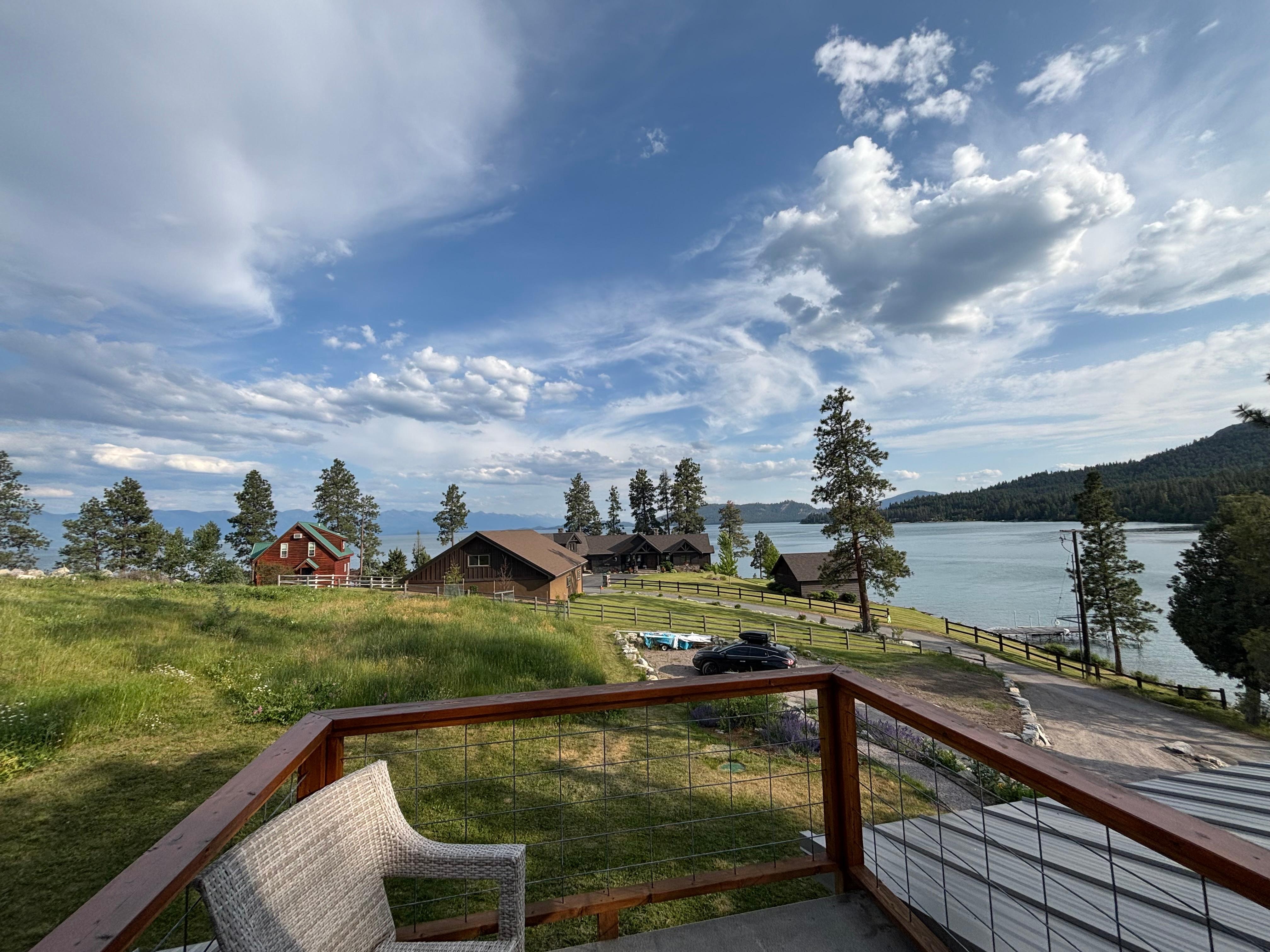Featuring a wrap around porch, a second-story balcony for excellent sunset views, 200 ft shoreline of private direct access to Flathead Lake, a 75 ft F-shaped dock, and more than enough parking for your family and friends.