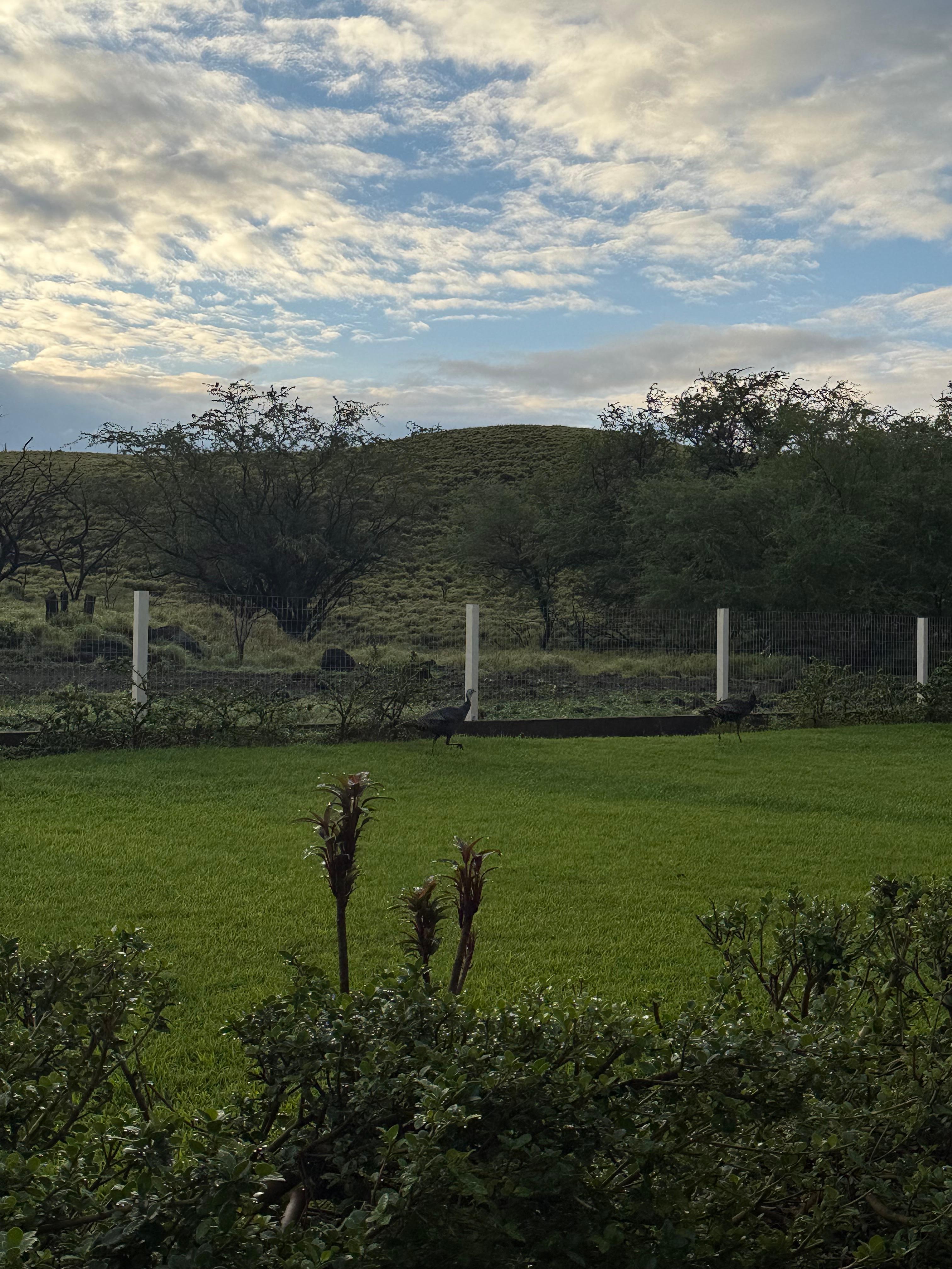 Inside your stay, appreciate immaculate living quarters and stellar amenities. The main living room is adorned with ample seating and a large TV. From here, you can walk out onto the private lanai where wild turkeys roam and the breeze is always a perfect relief. The adjacent full kitchen is ready to host your culinary skills, utilize the ample meal prep space before serving your creations at the breakfast bar or the dining table.