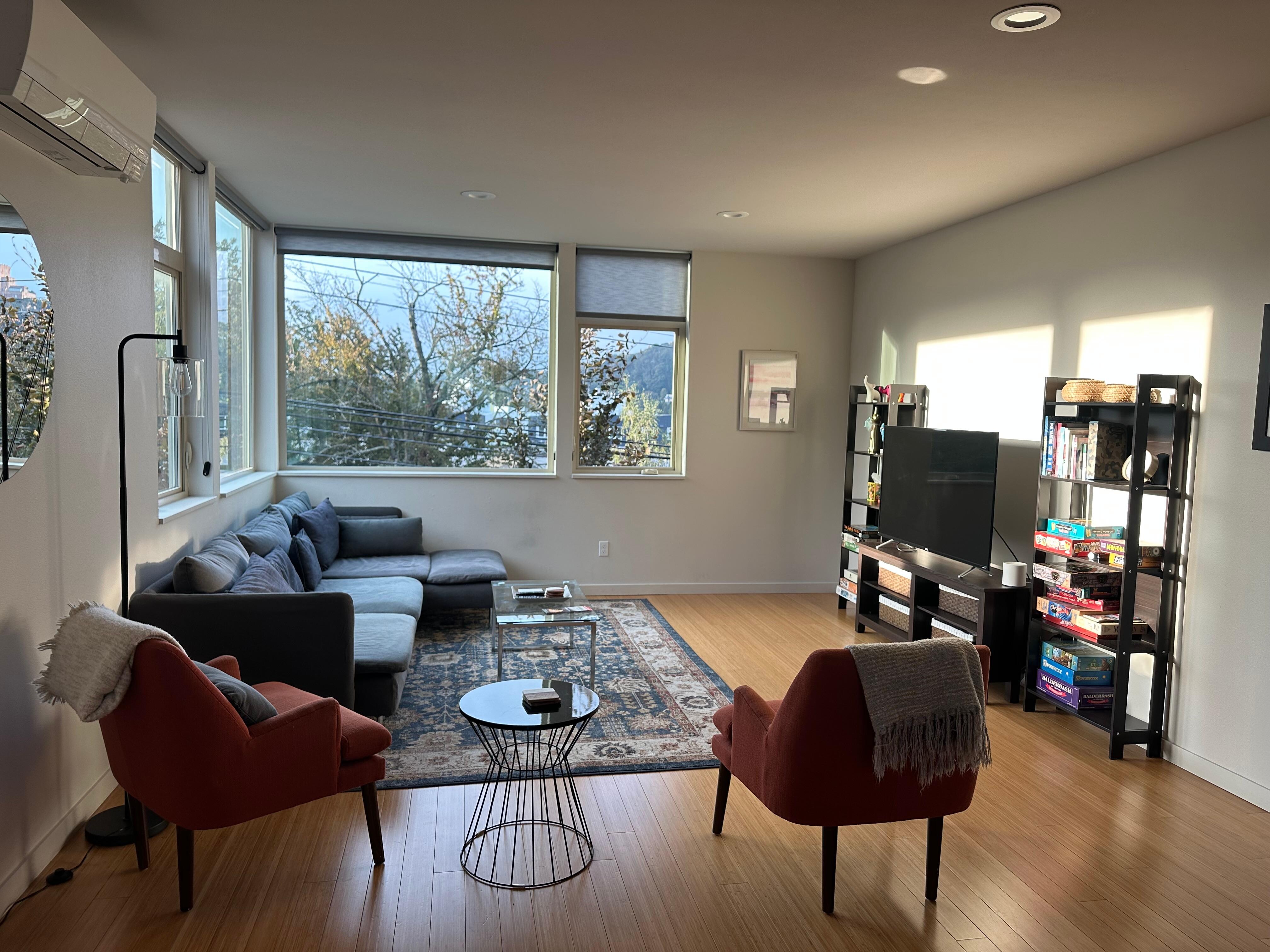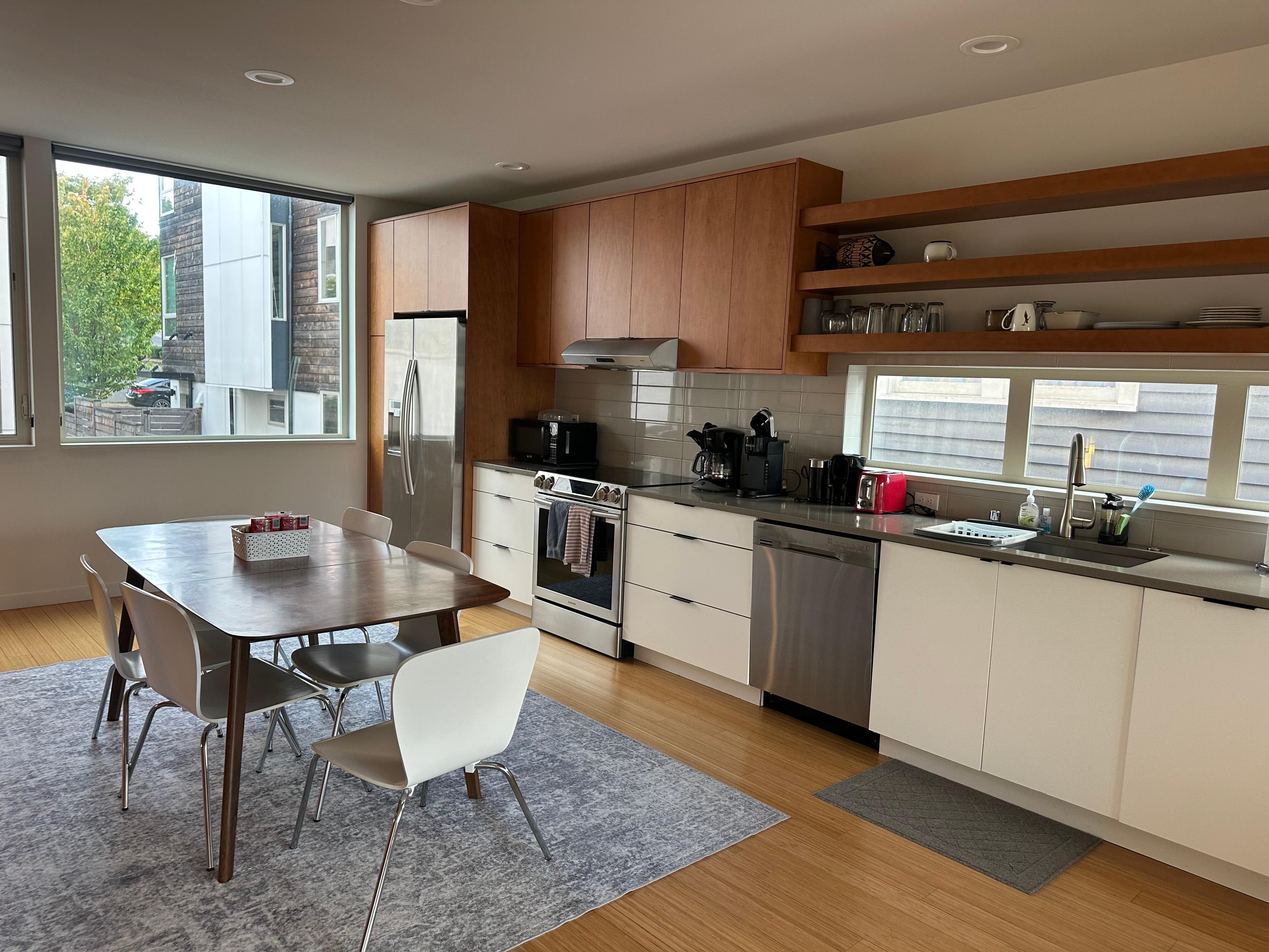 Step right into the open floor-plan living area with polished hardwood floors, where you will find everything needed to create fun, memorable moments during your visit to Seattle, WA.