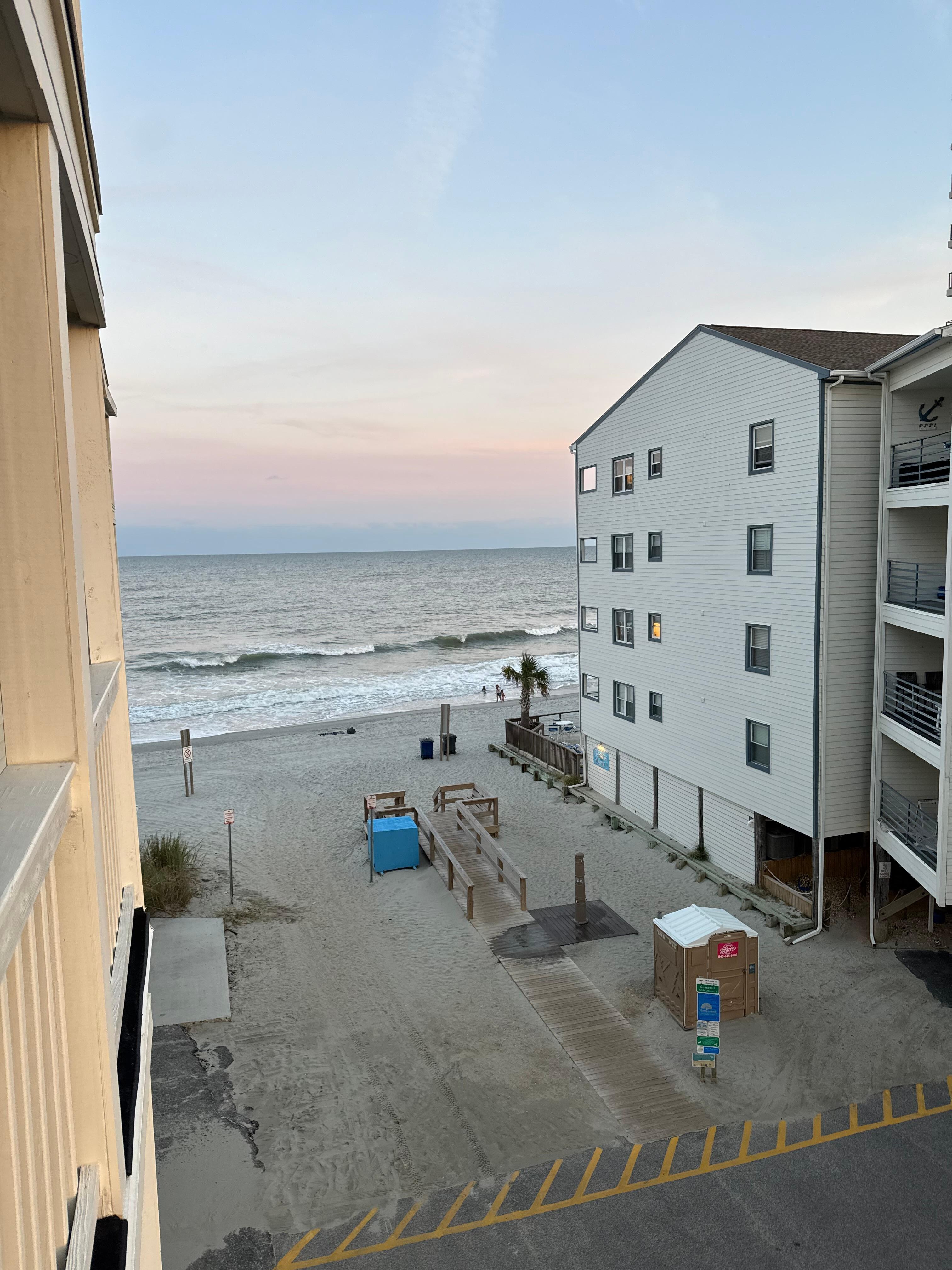 Seasider 304 is a three-bedroom, three-bath ocean view condo located 0.6 miles north of Garden City Pier. This unit features a fully-equipped kitchen with dishwasher and microwave, as well as a large private and furnished ocean view balcony, full-sized washer and dryer, central heat and air conditioning, and ceiling fans. Four TVs (cable) and Wi-Fi are also provided. Sleeping accommodations include one king and two queen-sized beds, plus a queen-sized sofa bed. Complex is oceanfront, the unit is not. Elevator. No pool. Parking is limited. No trailers. No golf carts. No pets. No smoking. Maximum occupancy: 8