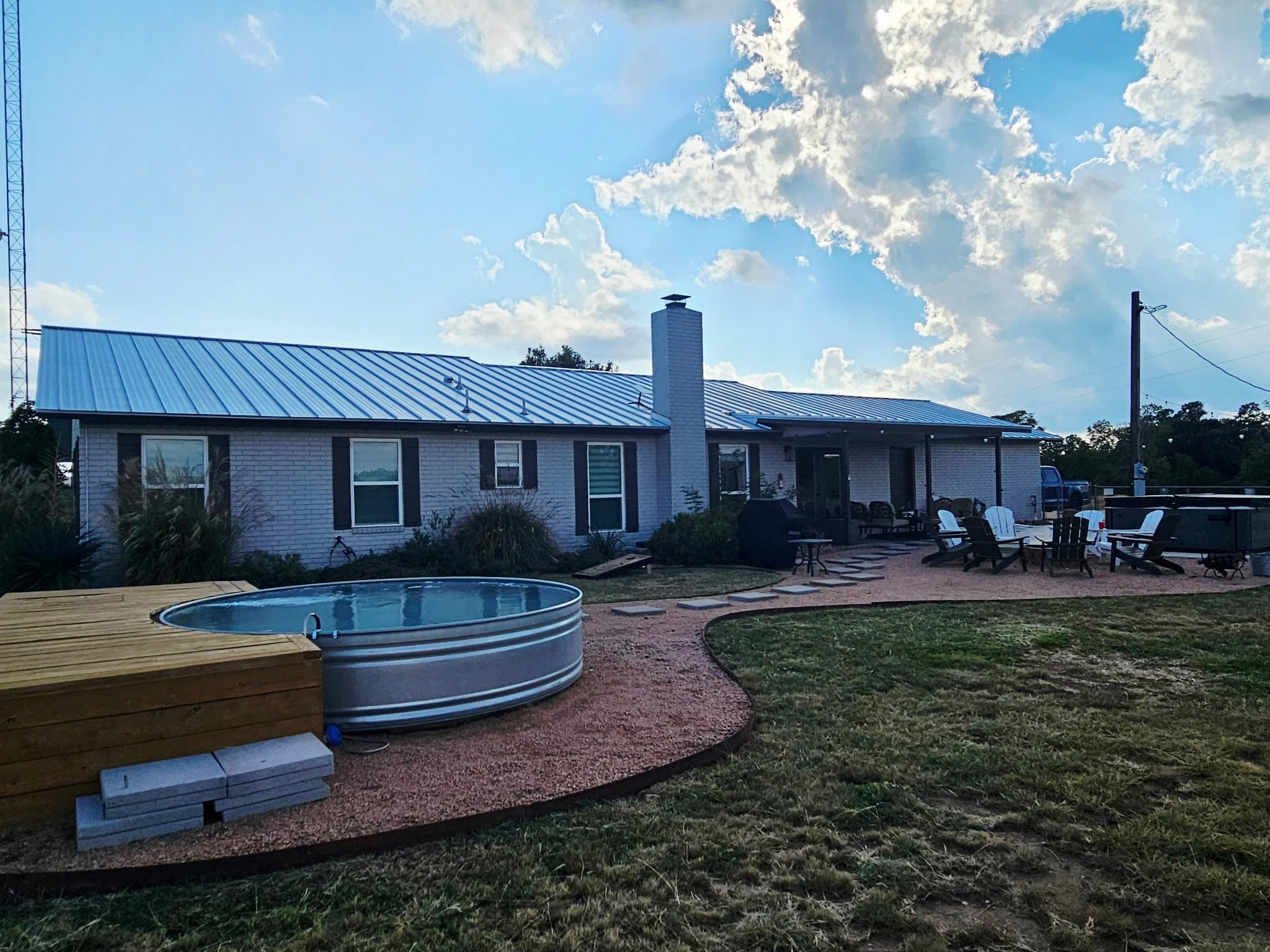 Welcome to Vero Ranch! This spacious, conveniently located ranch house features all the necessities and a lot of amenities! Located just outside of Fredericksburg on a private road near several popular wineries and La Bonne Vie Ranch, privacy and seclusion are plentiful on this private acreage. Inside is a large open concept living/kitchen/dining area with plenty of seating, a Flatscreen TV, full kitchen with two coffee pots, and a dining table for 8. The split floor plan provides peace and quiet for the primary suite, and a sense of camaraderie and convenience for the additional 3 bedrooms + bonus room!