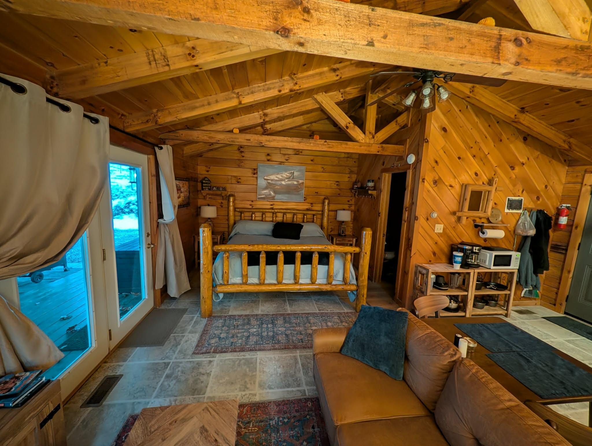 American Hollow is a small cabin, perfect for solo travelers or couples. It is conveniently located close to hiking trails, which is a big plus for nature lovers. American Hollow is pet-friendly, so you are welcome to bring your furry friend. Enjoy the relaxing hot tub after your hiking adventures or local activities. The gas grill and fire ring make for great BBQ evenings. And a king bed is comfy enough for a good night's sleep. American Hollow is perfect for a relaxing, outdoorsy getaway.