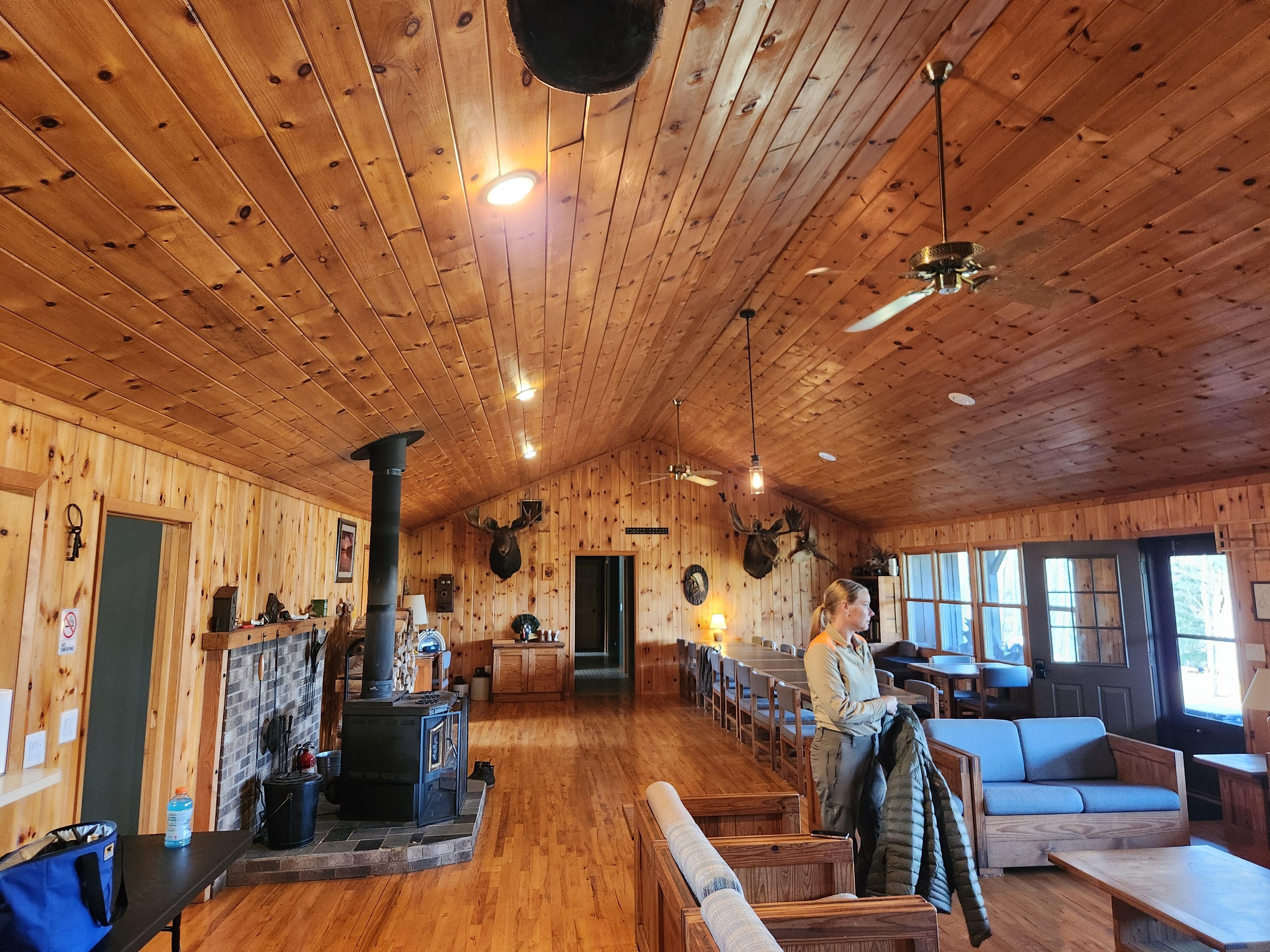 Pet friendly, Lots of parking for cars, trucks or trailers. There are no other renters or homes on this property or the lake. This is a very nice family retreat or for large groups, if you need accommodate more then 24 dont hesitate to ask. Need to bring a camper shouldn’t be a problem, just put it in the inquiry. There is a fire pit and firewood is provided, sauna with a changing room, 3 gas grills, it includes a 1 story cabin that is right next to the lodge, it has a living room, full kitchen, full bathroom, 1 bedroom with 2 queen size beds. The main lodge is also a 1 story structure, has a large great room, dining room, 2 full kitchens, 6 bedrooms, 3 full bathrooms and a half bath with the washer and dryer located in this bathroom, 1 of the full kitchens, entryway , the 1/2 bath with the washer and dryer, great room, dining room is in the center of the lodge. Then on one end of the lodge you have 2 bedrooms, each has a king size bed, there is also a full bath and full kitchen on this end, on the other end of the lodge there are 4 bedrooms, each bedroom have a king size bed and a set of twin bunk beds, there are 2 full bathrooms on this end. This lodge has a 30 acre spring fed lake all to yourself, there are bluegill, sunfish, and perch in the lake, we dot not allow any boats to be to the lake other than our own to control the spread of invasive species. The 160 Acre Property offers your own lake and stream. Enjoy fishing, boating, swimming, campfires and hiking through beautiful hardwoods. Row boats, canoes and firewood are provided. Great area for ice fishing as there is many lakes close by.