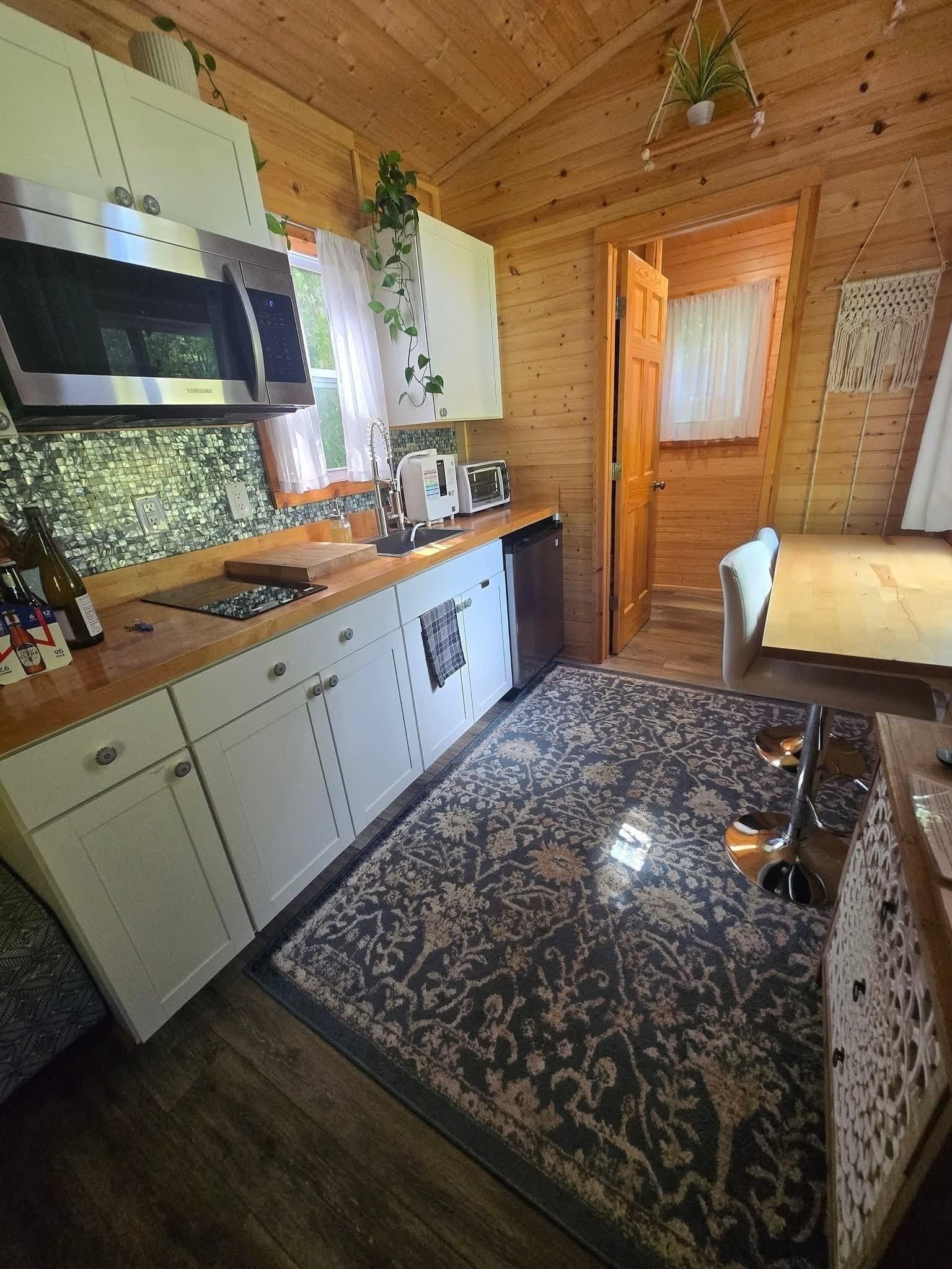 The kitchen has everything you need to cook or just heat up leftovers from your favorite restaurant. We are one of the only airbnbs in this entire town that provides a brand new medical grade water ionizer for guests to use throughout their stay. This device turns our wonderful well water into antioxidant rich, living water. The bathroom has an Anespa shower head. The Anepsa is not only a shower filter but it has different stones that supercharge the water creating mineral, ion water. The Anespa has a magnet that restructures the water giving the water a gentle and relaxing hot spring effect. The last 2 stones are mic and power stone that are so good for your skin and generate strong negative ions for rejuvenation and ultimate skin and hair hydration.