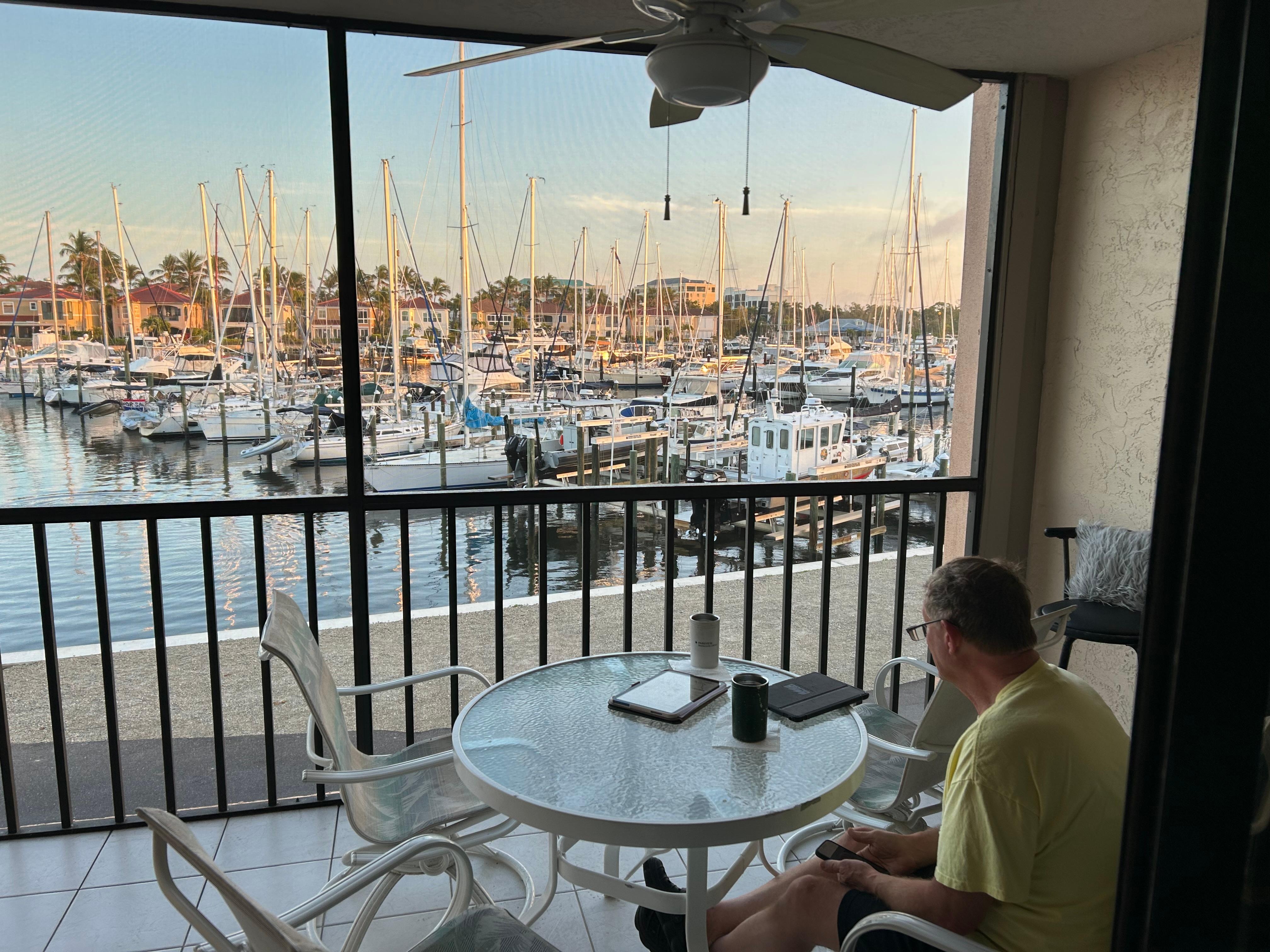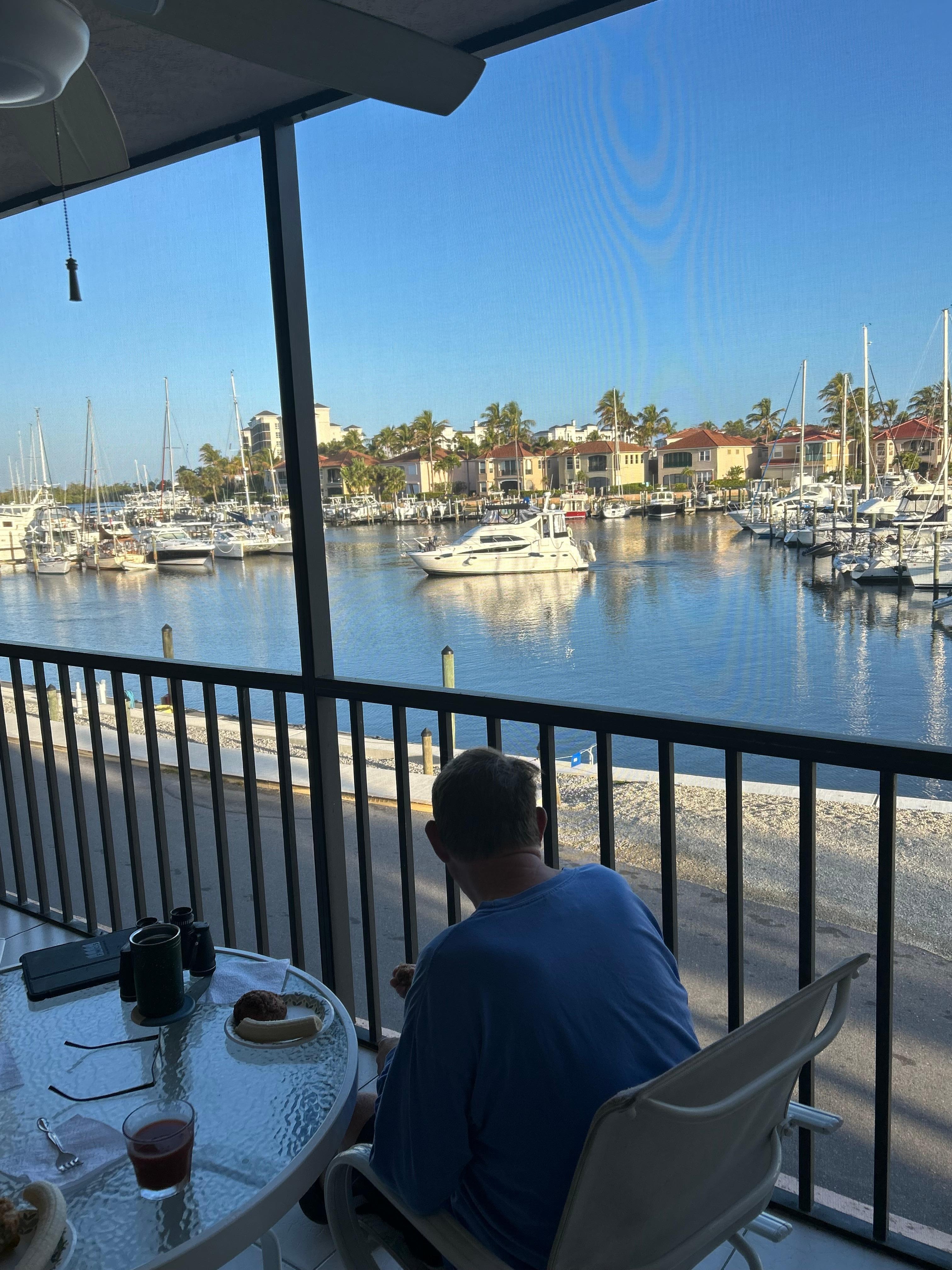 One of the best units in Keel Club- units. Perfect condo for TWO people who want to walk TWO minutes to have TOO much fun at the Cass Cay Grill!! Watch boats, manatees and dolphins as you sip coffee or wine in the private, screened in lanai facing the marina. Relax after a long day in comfortable king size bed. The bedroom is bright with patio door leading out to lanai. Well stocked kitchen with Keurig coffee maker. Living room with Smart TV and Netflix. Free WIFI. In unit washer/dryer. Large parking lot. Elevator in building. Gated community with three restaurants, can rent bikes and kayaks . Live music and entertainment at Links and Cass Cay Tiki Bar. Charter boats for fishing also available. 18 hole golf course, pickle ball courts and fitness club on site. Can purchase guest pass for fee.