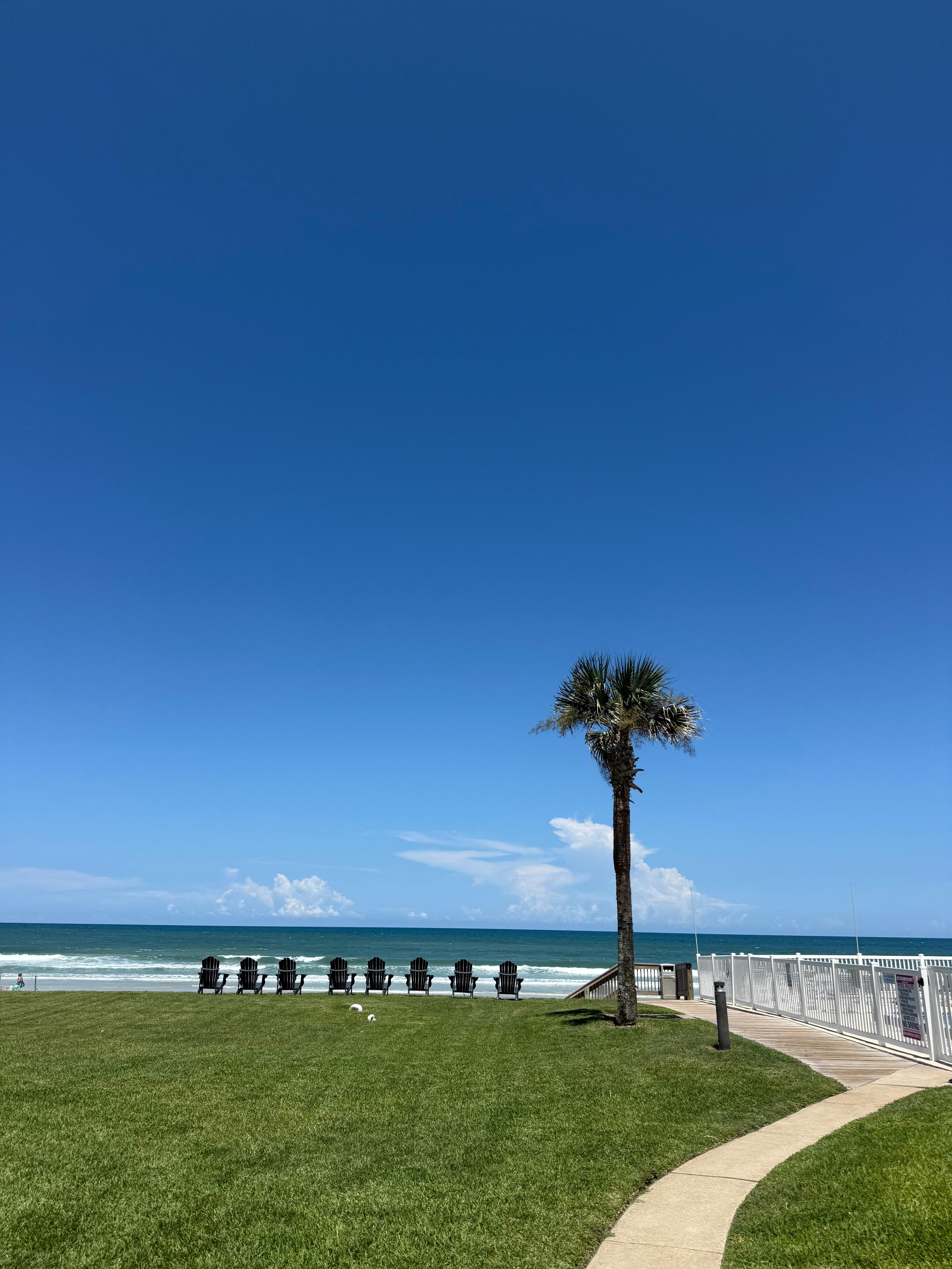 The living room is an incredibly cozy space where you can relax on the velvet queen-sleeper couch or sink into the comfy chairs while you enjoy the 65” smart TV. Fire up the LED fireplace with or without the heater, or just watch the warm colors. The living room opens to a wonderful outdoor patio space which is steps away from the pool and ocean. Soak in the NSB oceanside with a grill and patio set while you pour yourself a a cup of coffee or glass of wine and take in the sounds and views of the sea.