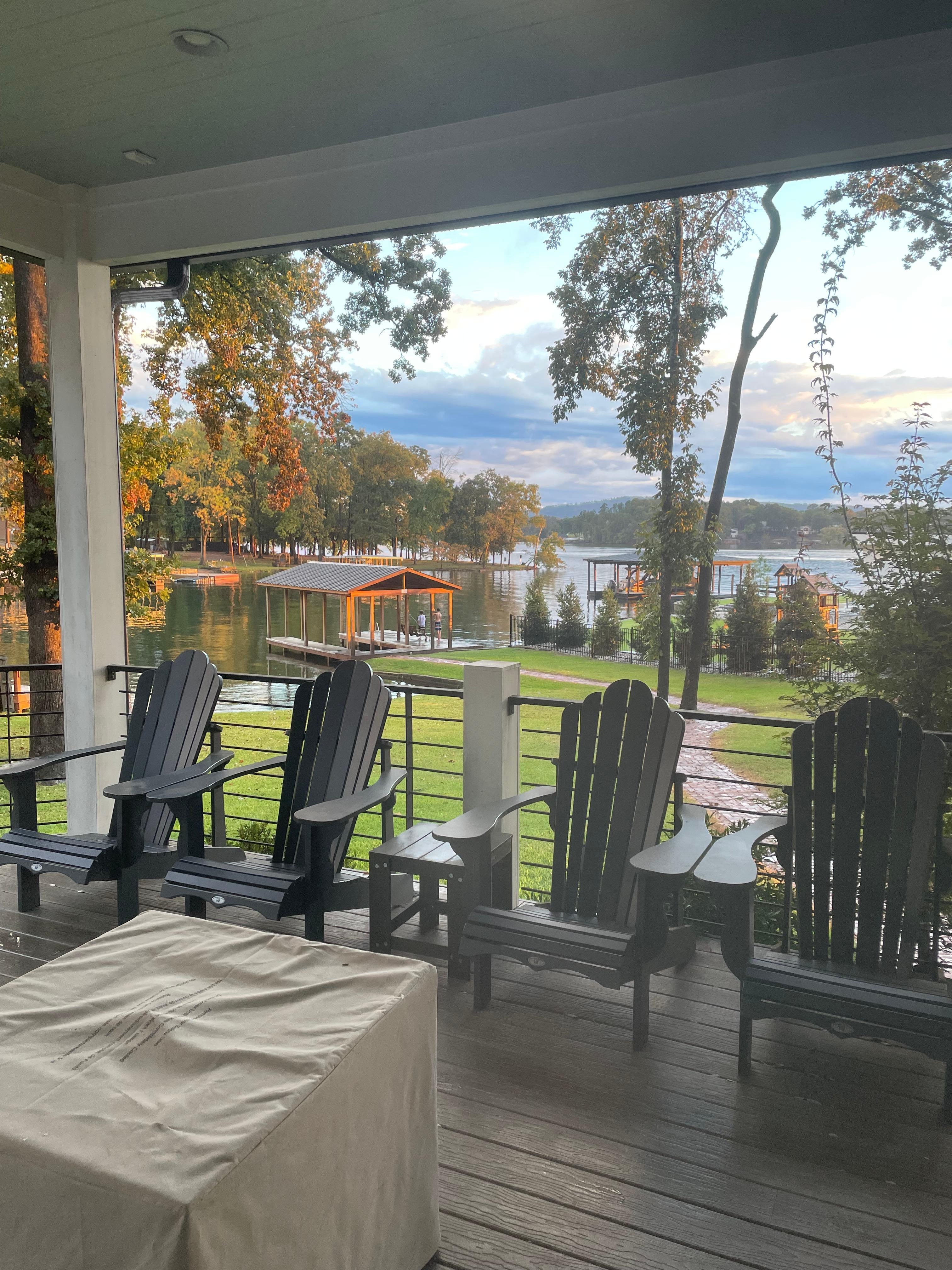 Off of our living room is the spacious porch. On the porch, there is plentiful seating for all to sit and enjoy the gorgeous view of the water. We have a propane grill outside as well. From the porch, you can walk down to the dock and to the water's edge.