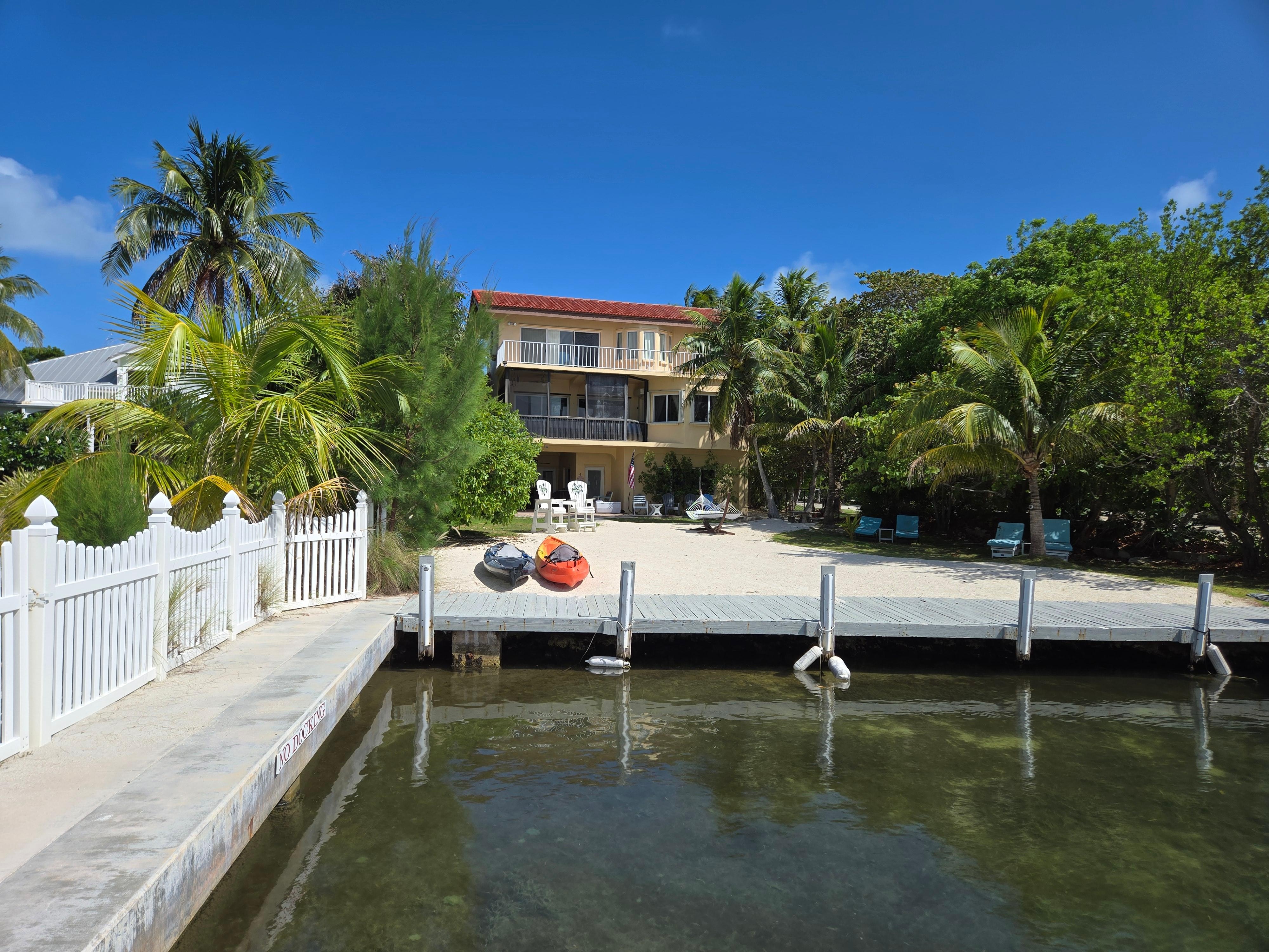 We provide bikes, kayaks and you can snorkel right from our dock. There are some resident iguanas in our mangroves and with luck you will see a manatee or great white heron. Pelicans, cormorants and gulls are common. We have a private beach where you can chill out and relax and shady outdoor spaces to enjoy.