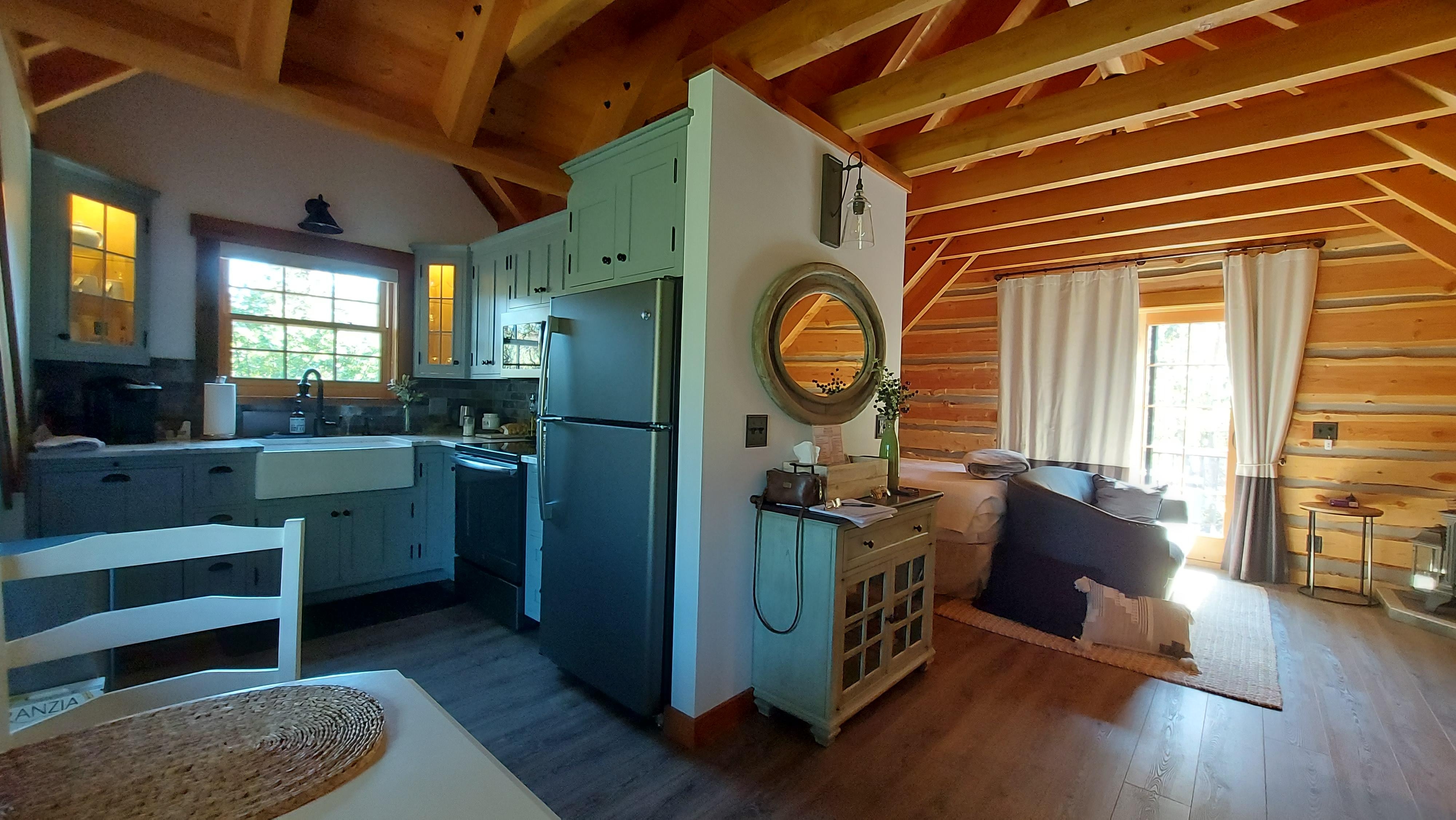 From the moment you enter the Carriage House you will notice the craftsmanship & the attention to detail the owner put into building this cabin. The open floor plan is warm & inviting with total privacy, comfort, and luxury that you will find throughout. The high ceilings & wood beams definitely give this space a modern~rustic vibe.