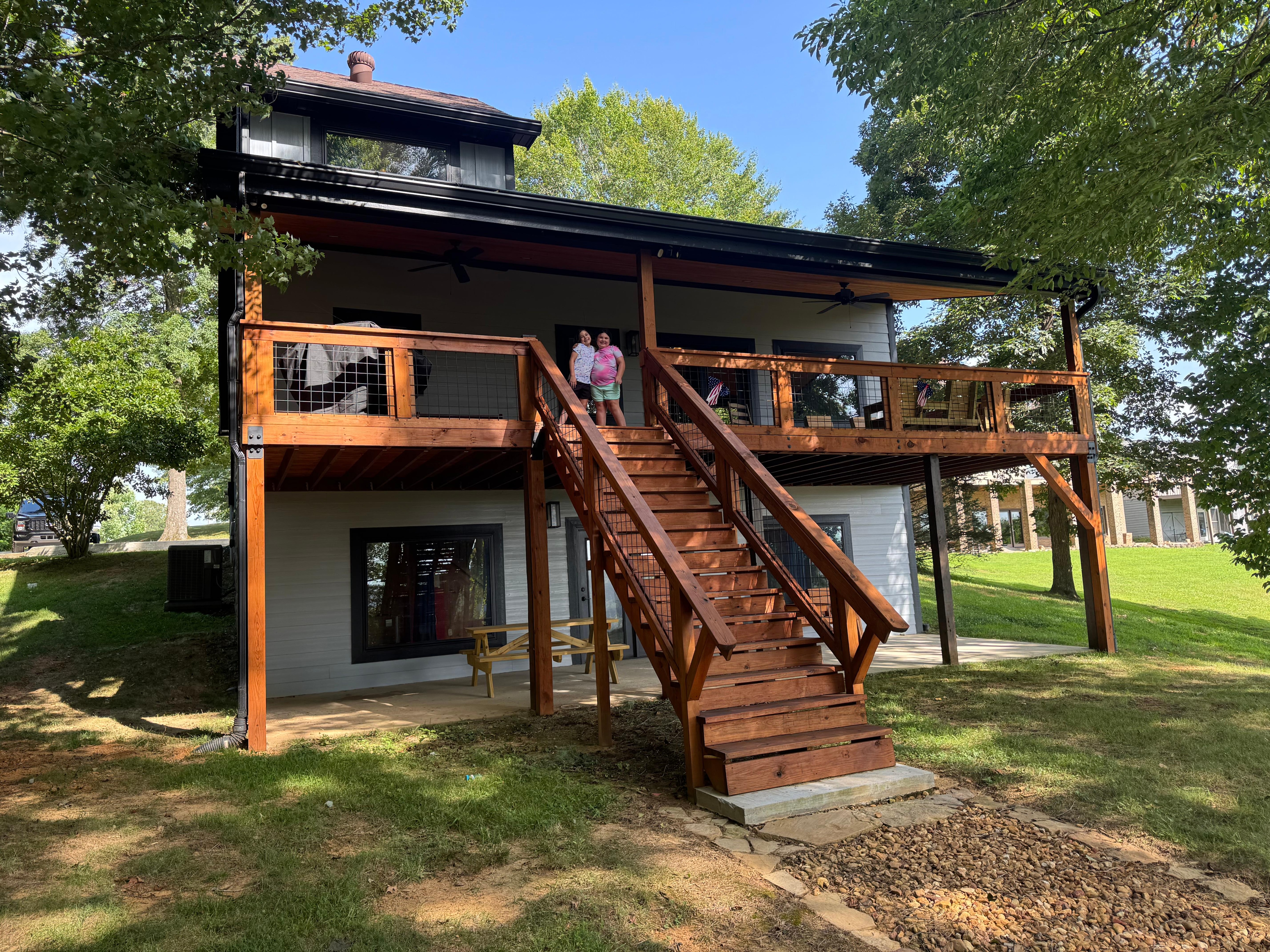 Only 5 minutes and 2.5 miles to Sunset Marina! Come relax at the newly renovated Cottage at Eagle Creek. Everyone can have their own space with 3 levels. There's a bedroom and bath on every level. Top level has private bath and picture window overlooking the lake. The main level has a bedroom, full bath, kitchen and dining and living room. And the basement has another private bedroom and bath with built in bunk beds (2 Queens, 2 Twins) that are non private.