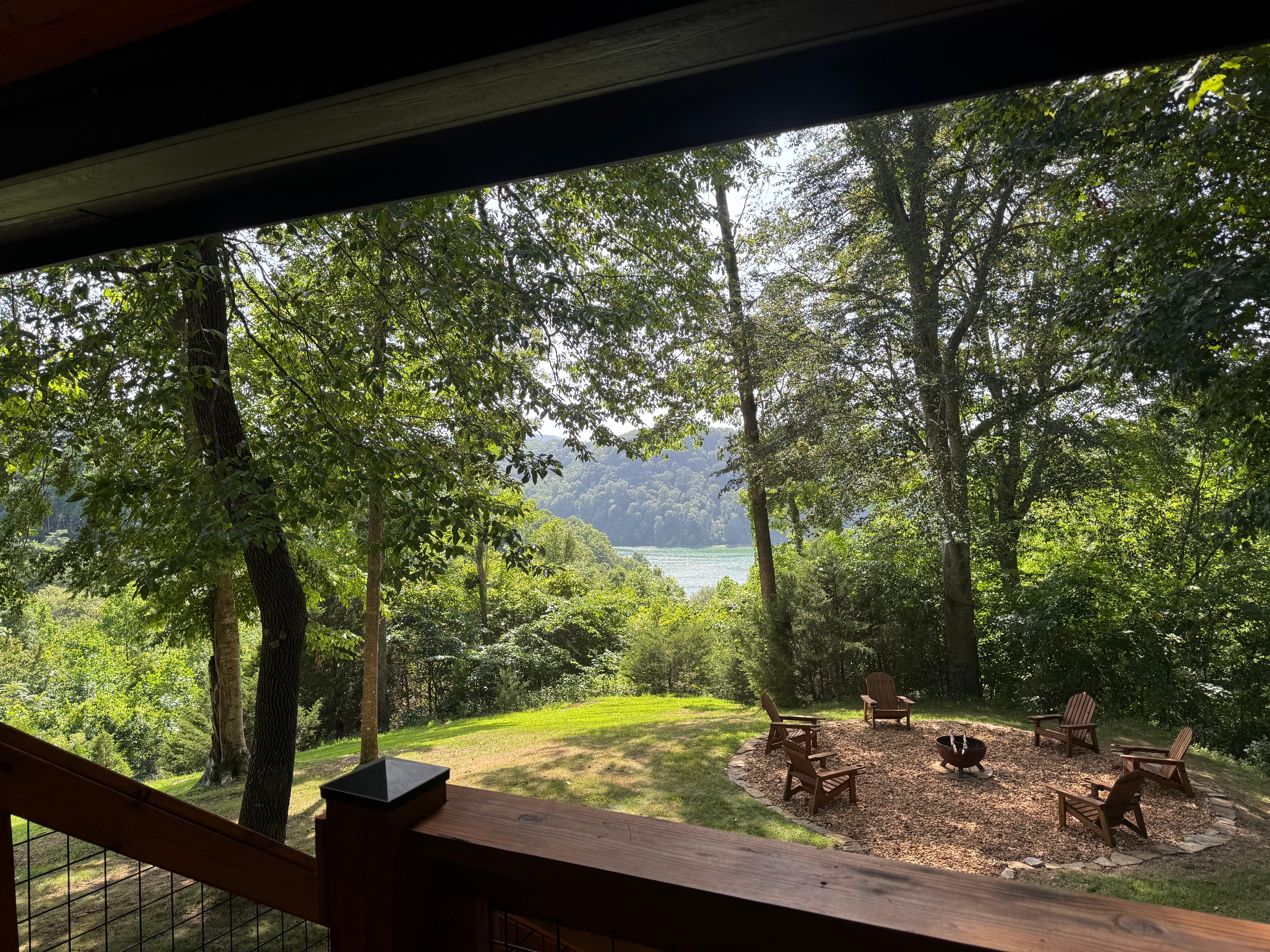 There is a nice big new covered deck with ceiling fans to enjoy the view of Eagle Creek with seating and a propane grill. The back yard is a nice size with a fire pit for roasting hot dogs and gatherings.