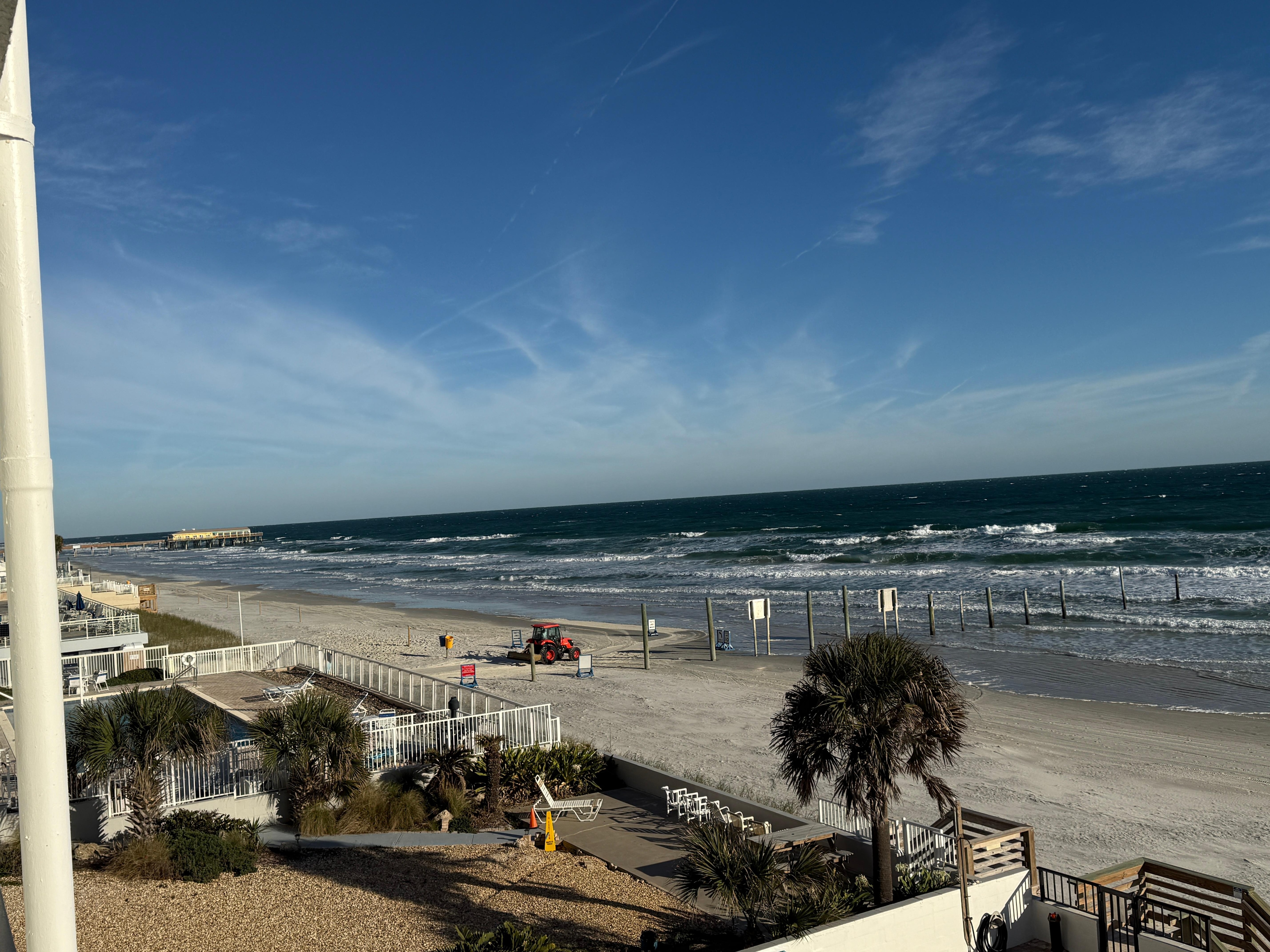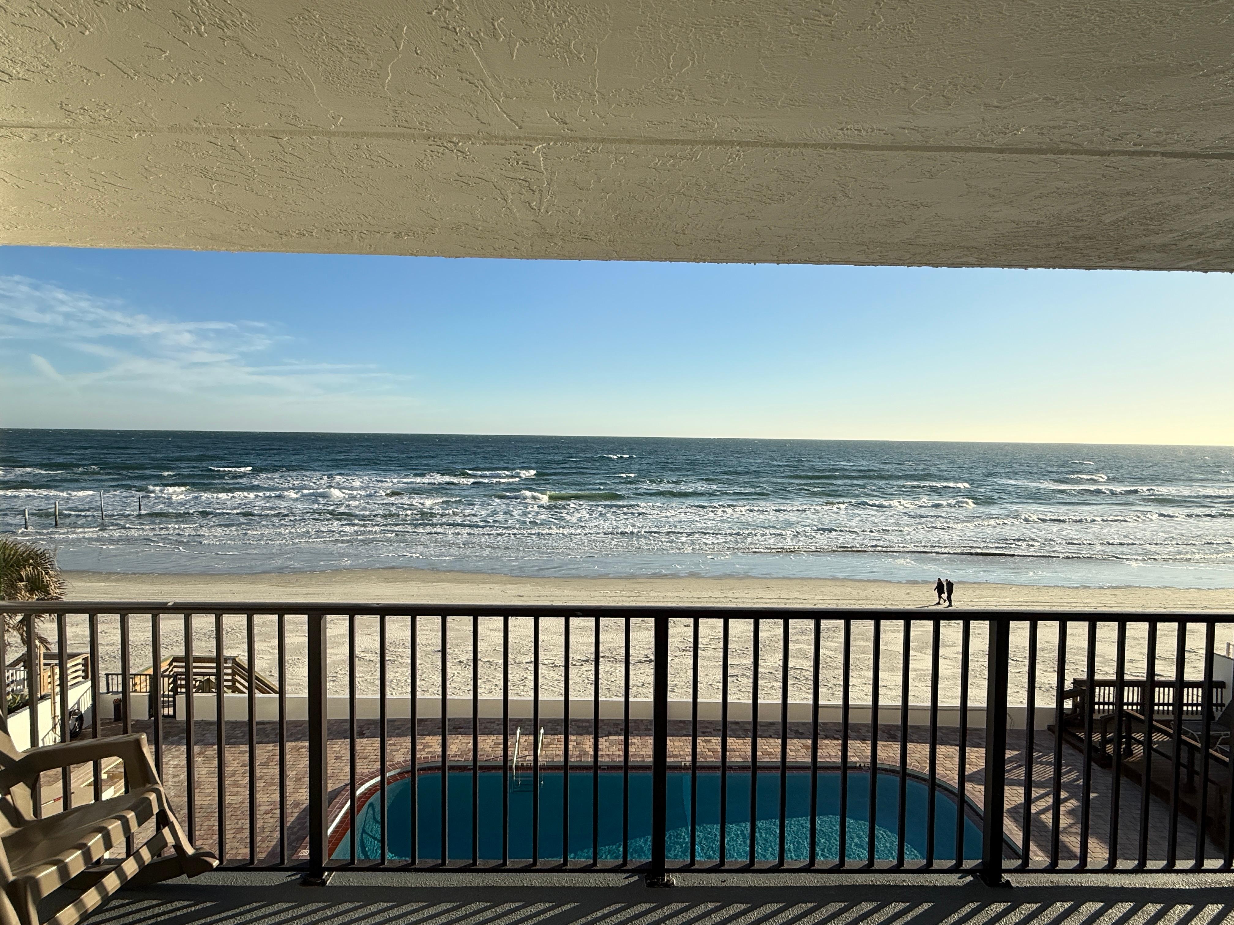 Unwind in this beautifully remodeled 3rd-floor oceanfront condo, located on the "traffic-free" section of Daytona Beach. Wake up to peaceful sunrises and enjoy unobstructed panoramic views of the ocean, beach, and pool from our specious 26' x 8' private balcony- perfect for relaxing in the mornings and/or evenings.
