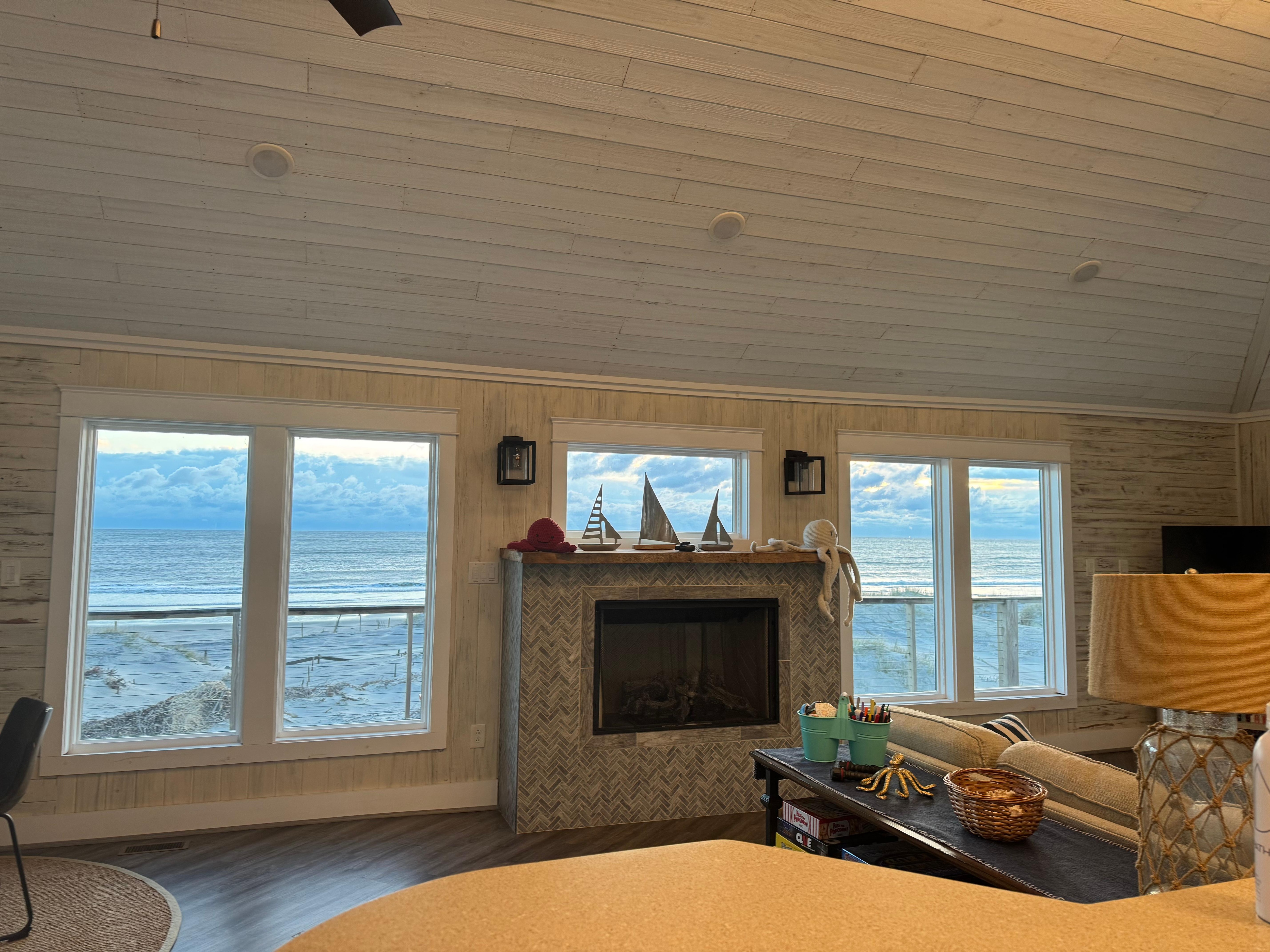 Stroll down a sandy path near the home to get to the ocean’s edge, or load up your 4-wheel drive vehicle with chairs, coolers and beach toys and park on the beach instead. Enjoy salty breezes and ocean views from the top-level sun deck or lounge in the shade on the covered deck on the mid-level. Savor more sights of the ocean from inside the home in the spacious top floor common areas which includes a great room, kitchen, dining room, and breakfast bar. After a full day of fun in the sun, fire up some friendly competition in the rec room with pool table.